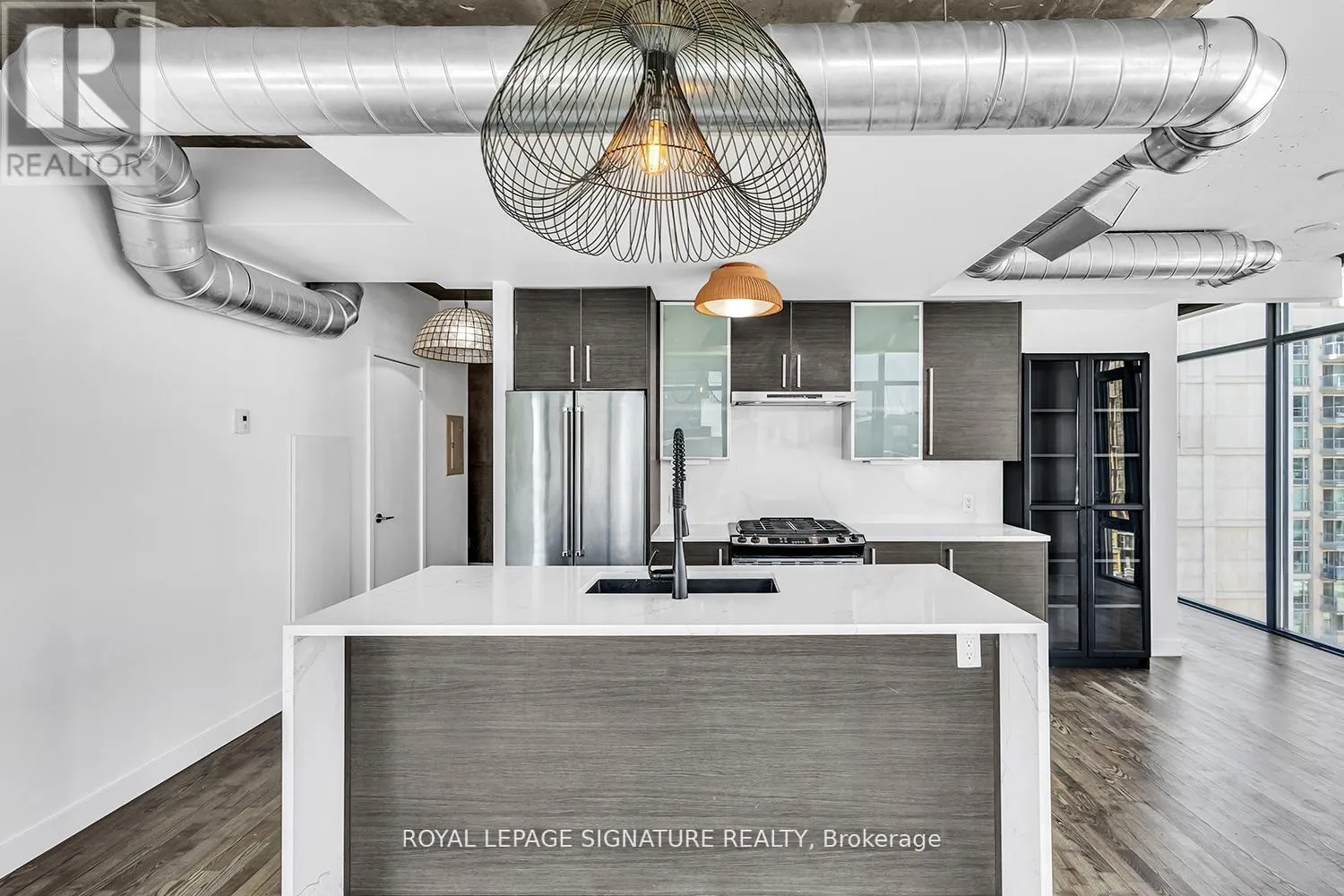 The main balcony is bright and large enough to actually enjoy, equipped with a natural gas BBQ for added convenience. An Additional Juliet balcony brings even more light and fresh air into the space. The kitchen is a chef's dream, with a natural gas range, an updated stone backsplash and a modern waterfall island that serves as both prep space and a favourite gathering spot. Your own parking spot and private locker add everyday convenience. Additional features include underground visitor parking, the streetcar nearby, and a grocery store right across the street. This unit blends comfort, style, and practicality in a way that makes downtown living feel simple. Lofts like this don't come up often. Be sure to see it in person. (id:27476)