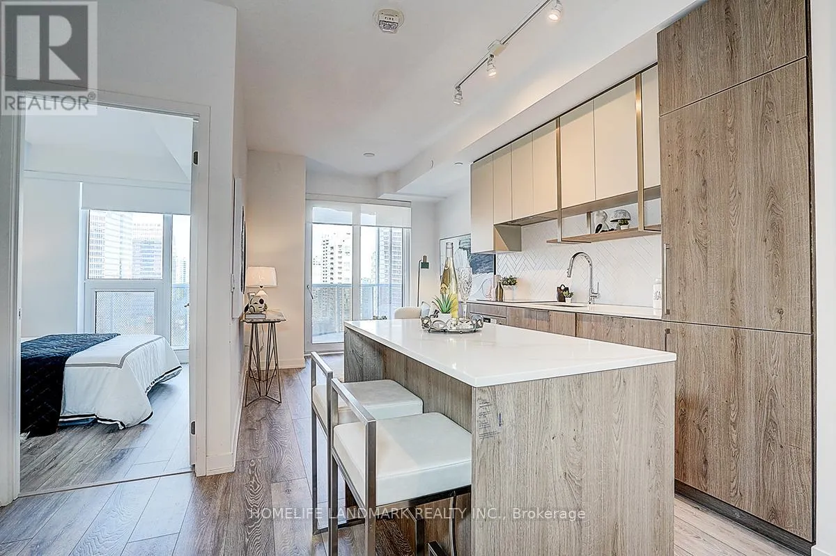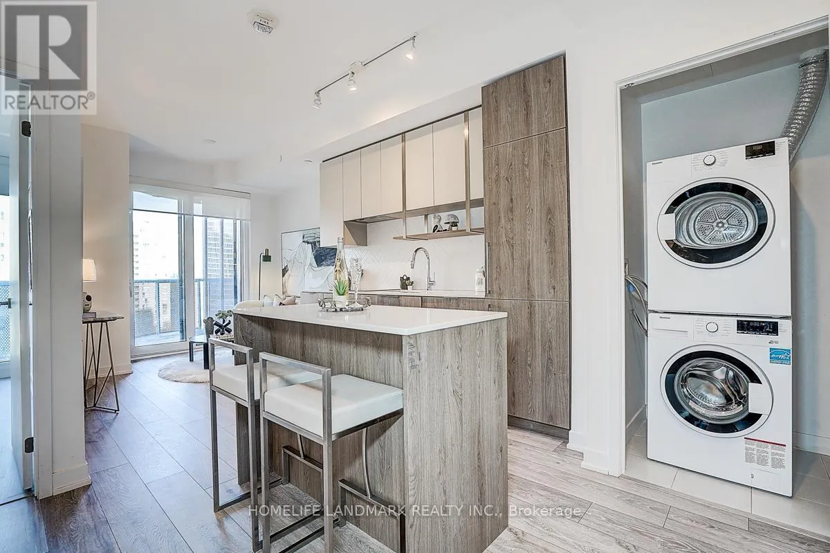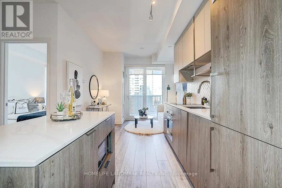 The kitchen features built-in, fully integrated appliances and elegant two-tone cabinetry, centered around a long island that serves perfectly as a dining table, prep area, or workspace. The bedroom is impressively spacious, easily accommodating a queen or even a king bed. From the living room, step out onto your large 113 sq ft balcony and enjoy unobstructed city and park views - your private outdoor retreat in the modern city. Located just a 5-minute walk to Finch Subway Station, commuting is effortless. At home, you're moments away from top-rated restaurants, cafes, parks, schools, shops, and all the essentials has to offer. If you've been searching for something new, stylish, and exceptionally convenient, this is it. Book your showing today and experience life at Azura. (id:27476)