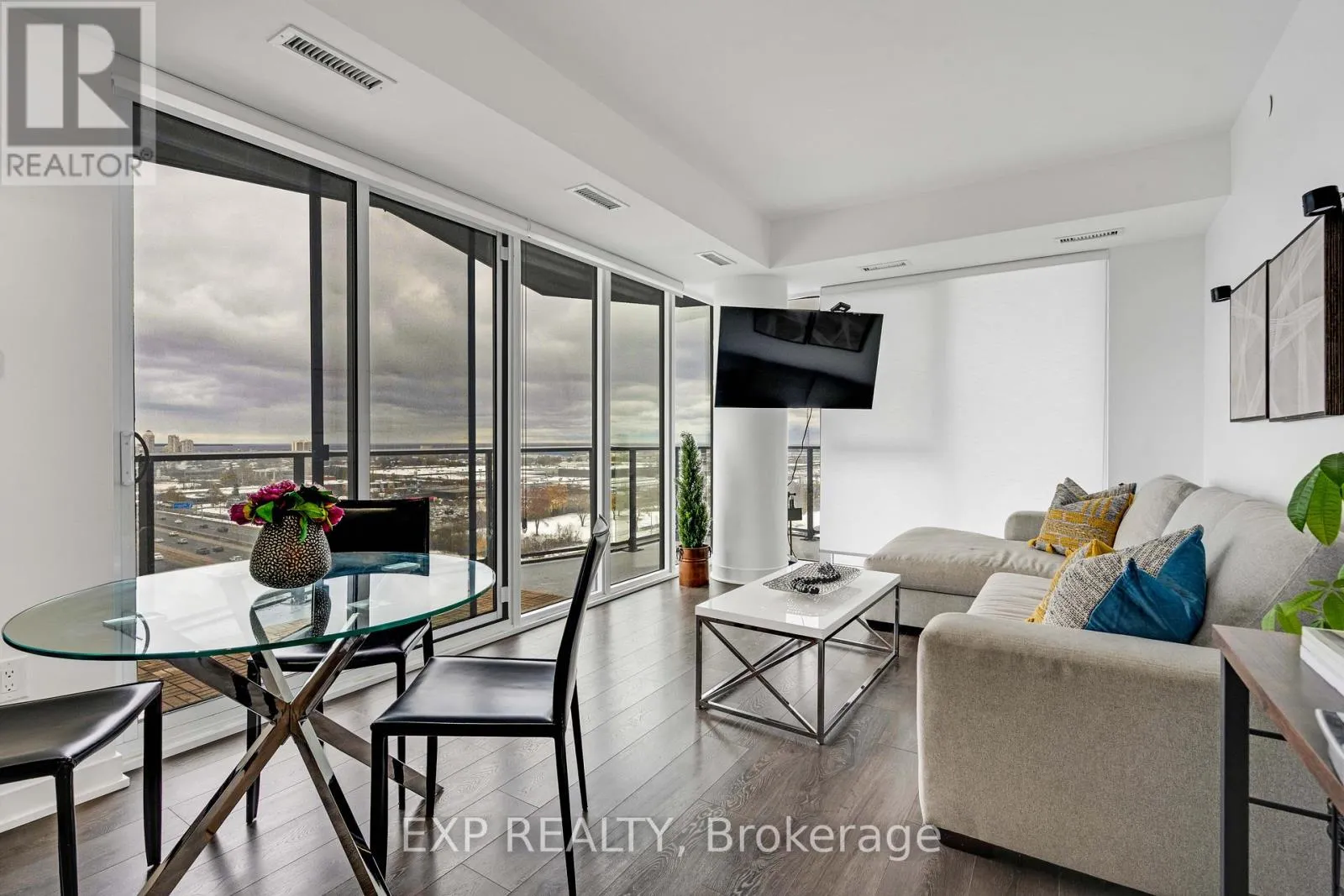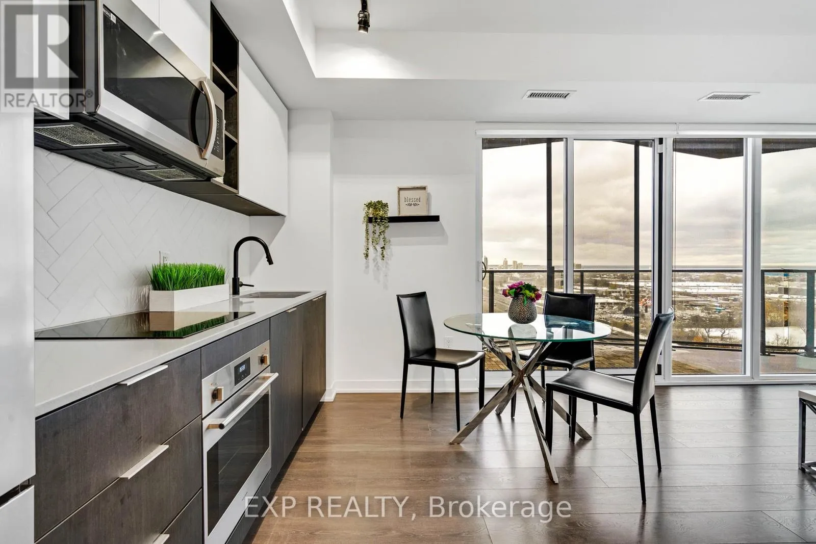 Queensway And Kipling Welcome to 36 Zorra, where contemporary style and everyday convenience come together in the heart of The Queensway. This beautifully upgraded 3-bedroom, 2-bath corner suite combines over $13K in enhancements with thoughtful design and an inviting layout. Enjoy 9' smooth ceilings, floor-to-ceiling windows, and an expansive wrap-around balcony offering clear views of the lake and skyline.