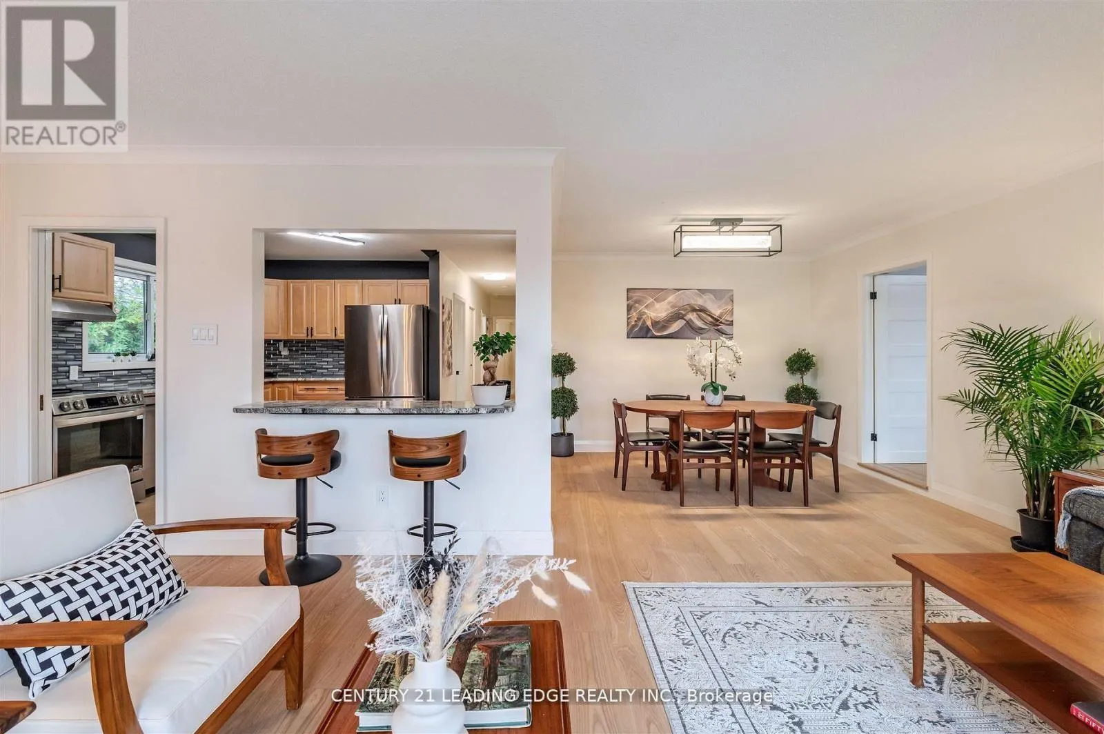 Victoria Park and Lawrence Beautiful RARE 4 BDRM (on the main floor), (1,500 sq.ft on MAIN floor-PLUS over 1,200 sq.ft. on the lower level with a separate side entrance for possible in-law suite or apartment with minor modification. 4th large bdrm can easily convert to a MAIN FLOOR FAMILY ROOM), brick and stone home with garage. Extensively renovated with too many features to list. Huge windows with great sunshine coming in and a true feeling of openness.
