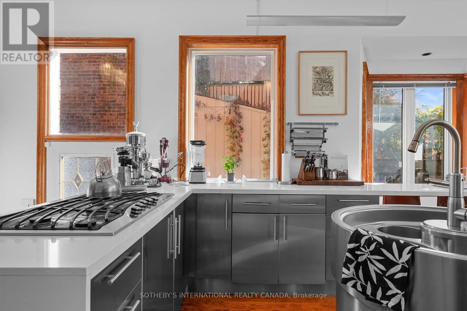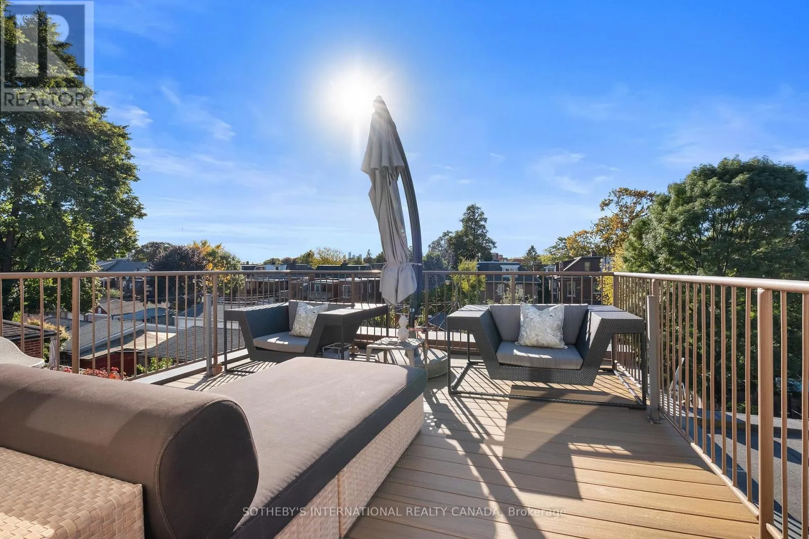 The result is a perfect blend of striking modernity + timeless craftsmanship. Sun-drenched interiors framed by towering windows reveal soaring 10+ ft ceilings, exquisite oak flooring + trim, elegant crown mouldings + charming original bannisters. The stunning Scavolini kitchen is a culinary dream - fully integrated with white Caesarstone countertops, sleek stainless steel cabinetry + high end commercial appliances, a double-door pantry + slide-out storage. At its centre is an award-winning rotating water station that makes wash + prep effortless without sacrificing counter space. A cozy breakfast bar overlooks the private side patio through a bright bay window. The sunlit family room is perfect for red-carpet movie nights beneath a trio of skylights. The second floor with 9+ ft ceilings hosts the spacious primary bedroom, a large second bedroom w/ abundant storage + a third bedroom used as a home office featuring a walkout to a sunny terrace. The third floor boasts a cozy fourth bedroom, a jewel-like 3-pc bath lined in shimmering Bisazza mosaic tiles + a large sundeck with spectacular sunset views. The lower level with 8+ foot ceilings offers a fully soundproofed media room/bedroom, full 4-pc bath + convenient laundry/utility room. A self-contained, privately accessed basement studio apartment with a 4-pc bath provides an excellent opportunity for supplementary income or multi-generational living. Pls.see attached Property Information Sheet for a detailed list of features, updates, inclusions + exclusions. (id:27476)