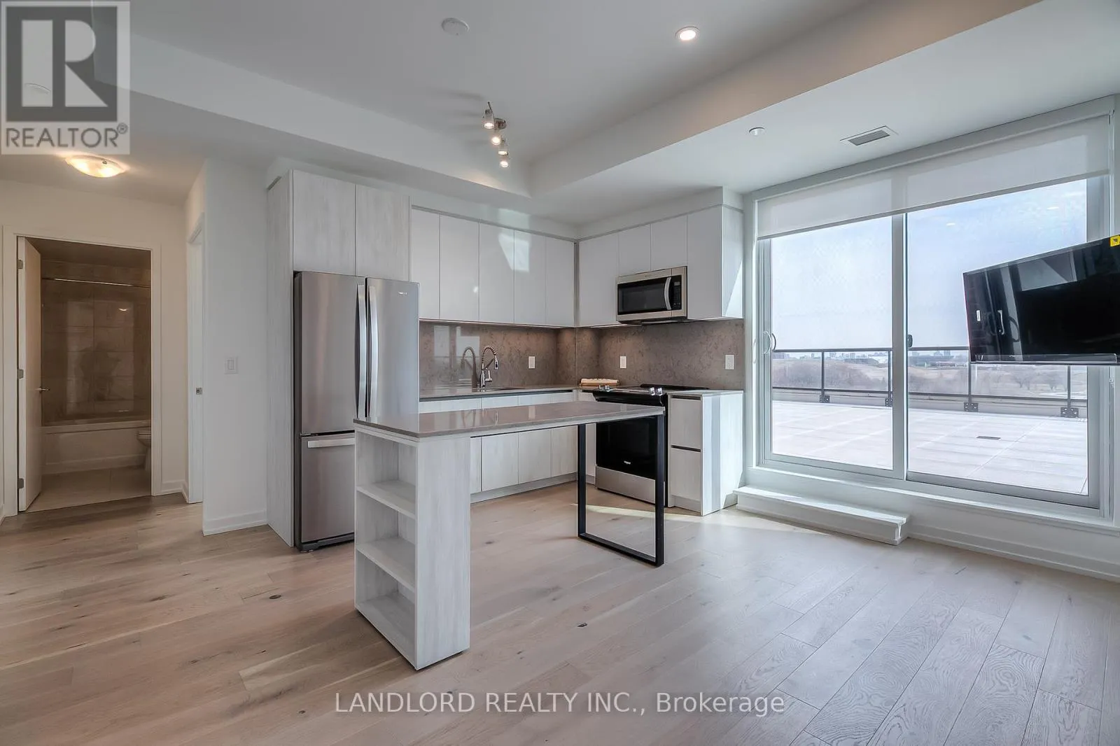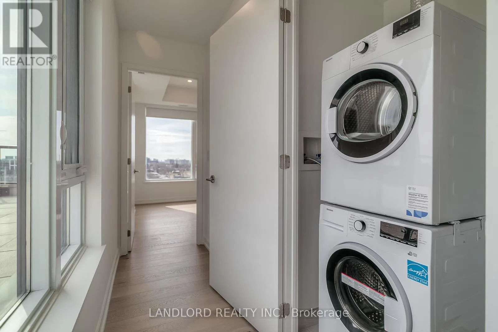 Primary bedroom (with 3pc ensuite, his and hers closets, east exposure overlooking terrace. Second bedroom (with built-in double closet, adjacent the 4pc bathroom, east exposure overlooking terrace). Floor plan among the listing images and attached to listing. Features and finishes include: engineered wood flooring throughout, stone countertops & matching stone backsplash, Whirlpool stainless steel appliances, Blomberg laundry machines, two-tone kitchen cabinets, tiled tub & shower stalls, pot lights, and more! || Appliances: Fridge, electric range, range microwave, dishwasher, washer, dryer. All existing window coverings. All existing light fixtures. || Building Amenities: Refer to listing images to see all! (id:27476)