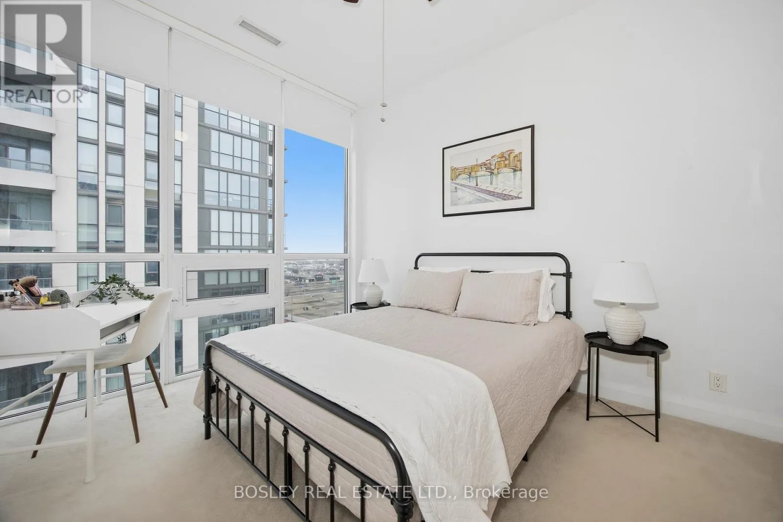 Soaring 10-foot ceilings and wall-to-wall, floor-to-ceiling windows bathe the space in natural light while framing outstanding views of the city skyline and Lake Ontario. The layout is as functional as it is beautiful: a generous living area with space for a full couch-and-TV setup, a proper dining area, a big kitchen with lots of counter space and storage, and a primary bedroom that comfortably fits a king-sized bed, complete with an expansive walk-in closet and a private ensuite. The second bedroom is equally impressive, and the den- a true nearly 8' x 8' space - works perfectly as a home office, nursery, or guest space. This is not a dent; it's a room. Meticulously maintained and in impeccable condition, this unit is truly move-in ready. The building delivers resort-style amenities: indoor pool, sauna, hot tub, fully equipped gym, outdoor terrace with BBQs, guest suites, pet wash station, visitor parking, and 24/7 concierge. Step outside and you're immediately beside a beautiful park with a dedicated off-leash dog area. Groceries, great restaurants and the TTC are all within a few minute's walk, and the Gardiner Expressway, and Hwy 427 are all within easy reach. Whether you're walking, taking transit, or driving, this location works, especially for those working at Pearson Airport - fast commute time by car and an express bus route if you don't want to drive! (id:27476)