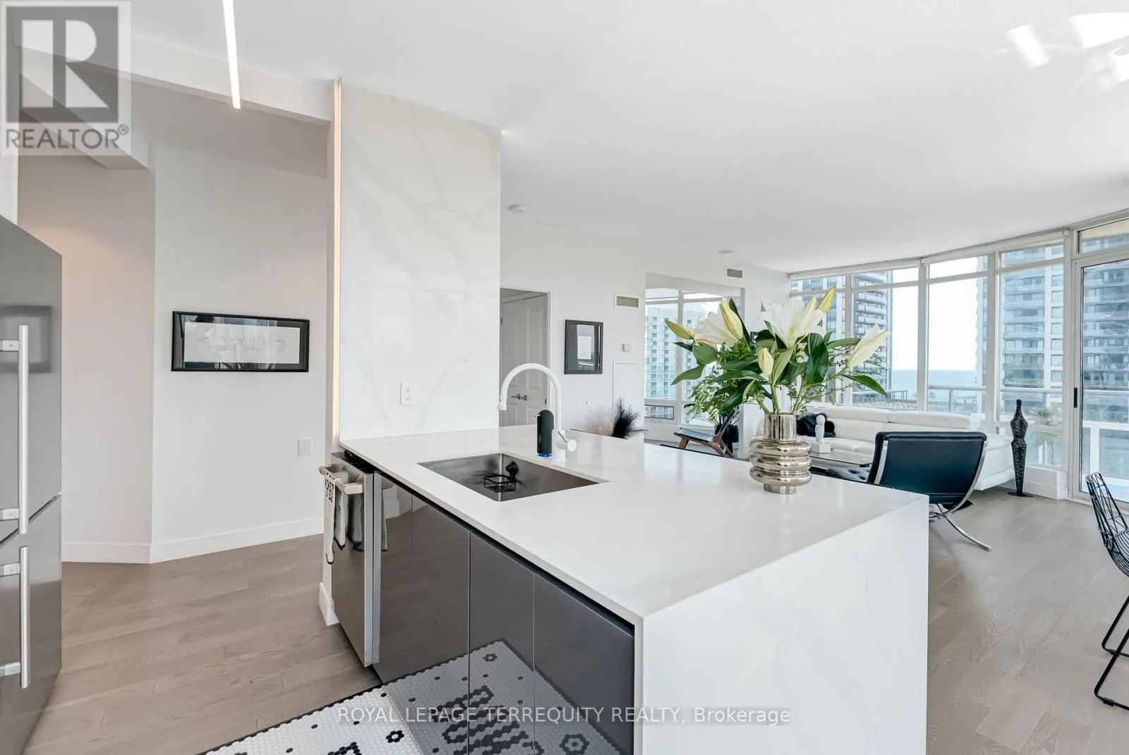 Cross Streets: Windermere & Queensway. ** Directions: S of Windermere. EXCEPTIONAL VALUE! Enjoy RESORT-STYLE LIVING @ Windermere-by-the- Lake! Revel in shimmering lake views and downtown skyscraper vistas! This rarely offered and spacious CORNER 2+1 bed, 2 bath residence features a functional split-bedroom layout and over $70K in luxury upgrades and finishes. Designed & renovated with contemporary flair, every detail has been thoughtfully curated for the discerning buyer who values comfort, design, and elegance- just pack your bags! The finest materials, craftsmanship, and finishes elevate this suite to Architectural Digest-worthy status.