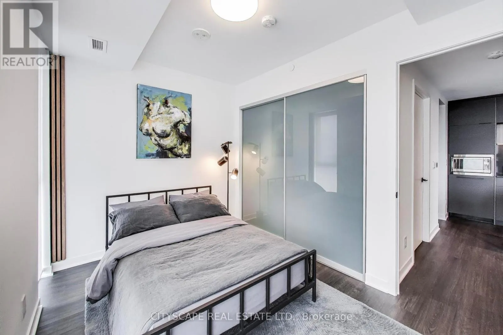 The modern open-concept kitchen is equipped with integrated Fulgor Milano appliances and flows seamlessly into the bright living area, creating an inviting space for entertaining. The spacious primary bedroom includes a large closet with built-in organizers and comfortably fits additional storage like a dresser.Located in a vibrant, walkable neighbourhood in the city's sought-after west end, you're just steps to charming cafés, casual dining, and everyday essentials including Wychwood Farmers' Market, LCBO, and No Frills. Commuting is effortless with excellent transit access via the 512 streetcar and multiple bus routes-making this an ideal opportunity in the Toronto condo market. (id:27476)