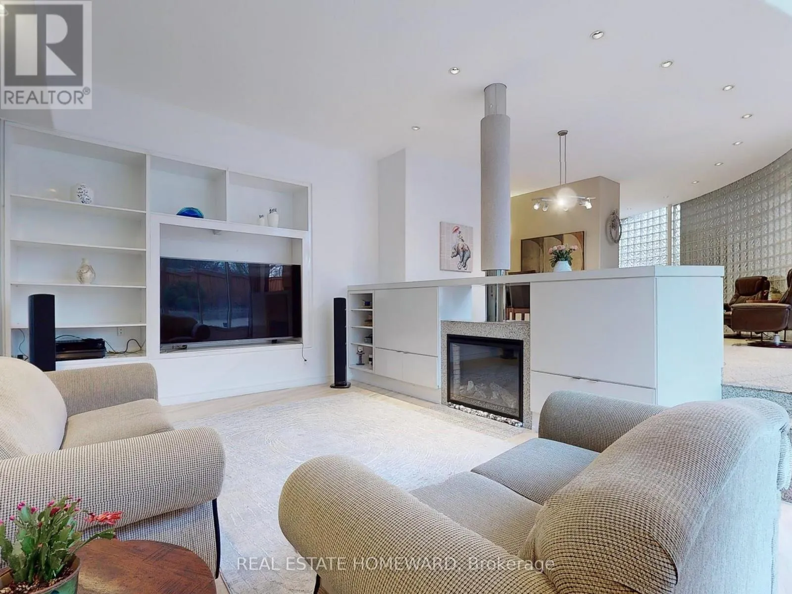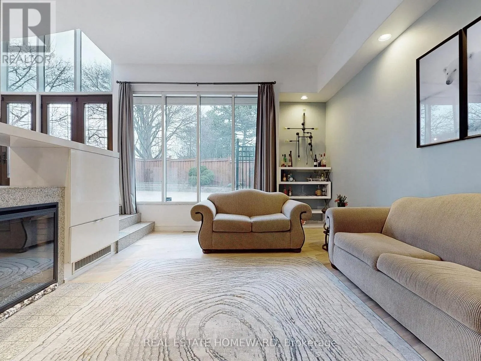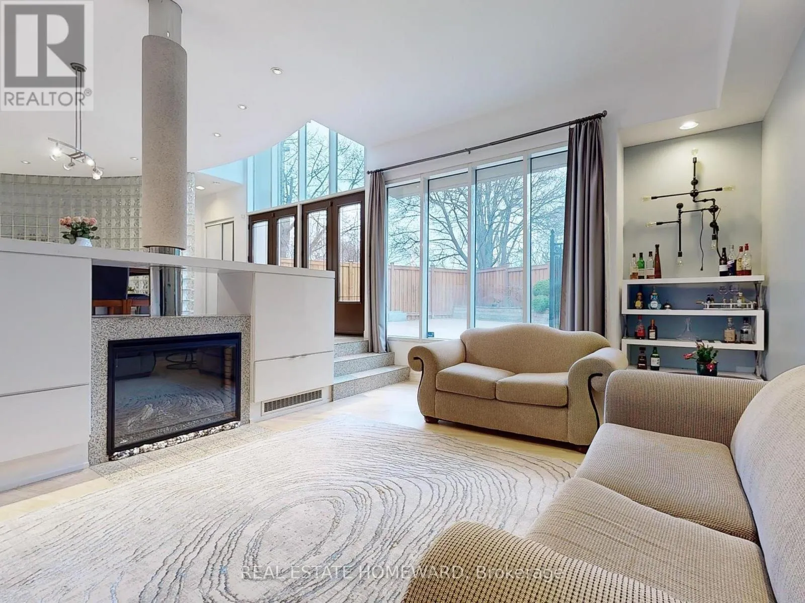 The main floor boasts five expansive living areas seamlessly connected , with no doors to divide the space yet offering an intimate sense of privacy. A stunning 14 foot cathedral ceiling, loft inspired design elements, and open spaces create an atmosphere of grandeur. Four glass doors lead to different areas of the backyard, ensuring a harmonious indoor-outdoor flow. With 6 fireplaces scattered throughout, this home becomes the ultimate destination for both vibrant entertaining and cozy family evenings. The master suite is truly a dream come true, a retreat with two walks-out to a private terrace the size of a one-bedroom condo . This luxurious space is set apart from the rest of the second floor by a floating passage, offering tranquility and exclusivity. A diagonal skylight spans the entire second floor, flooding the home with natural light. The spa-like ensuite pampers you with a hidden sauna, while the extended skylight illuminates the walk-in closet and the hallway leading to the second floor common area . Here, you'll find a cozy space, perfect for a reading nook or a nightly gathering before bedtime. This area connects the remote master bedroom to another three generously sized bedrooms and invites you to pause and reflect. Floor to ceiling loft-sized windows stretch from ground to roof, framing breathtaking views of each season , filling the house with light. This one-of-a-kind residence , is designed for those who value elegance , openness and the perfect balance of modern comfort and timeless warmth. (id:27476)