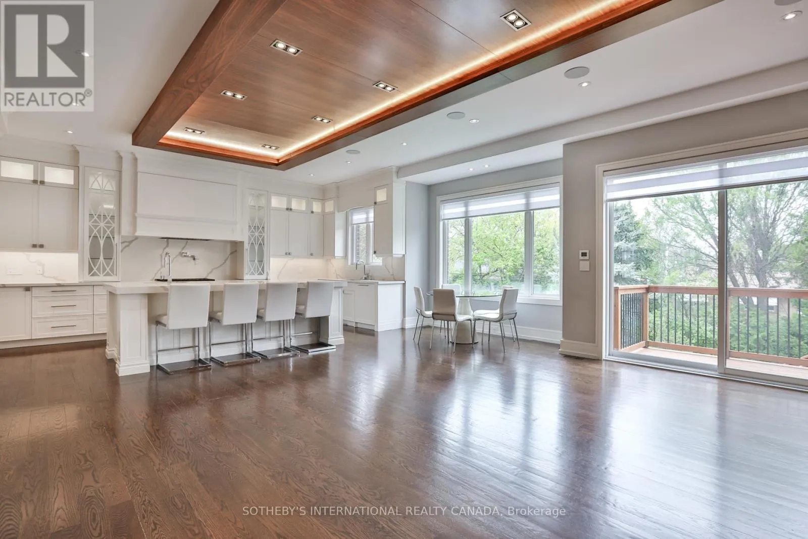 A must see spacious eat-in chefs kitchen featuring top-of-the-line Wolf appliances, ceasar stone countertops and backsplash, custom cabinetry, and an oversized island. The kitchen area is made for entertaining combining the breakfast area and family room with a walk-out to a large deck overlooking the professionally landscaped backyard Elegant hardwood flooring runs throughout the main floor, which also includes a formal living room, a generous dining room with walk-through access to the kitchen, and a private library/office. A grand staircase leads to the second floor with four bedrooms, each featuring high end ensuite bathrooms. The primary suite showcases designer decor, a custom walk-in closet, and a 6-piece spa-like ensuite with soaker tub, double sinks, towel warmer, and luxurious hotel like finishes. Enjoy the convenience of a second-floor laundry room equipped with a Samsung front-load washer and dryer. The fully finished lower level features heated flooring, a stylish wet bar, 5th bedroom with ensuite, and a walk-out to generous fully sodded and landscaped yard. A two-car garage with direct access into the home completes this exceptional offering. Don't miss this beauty!! (id:27476)