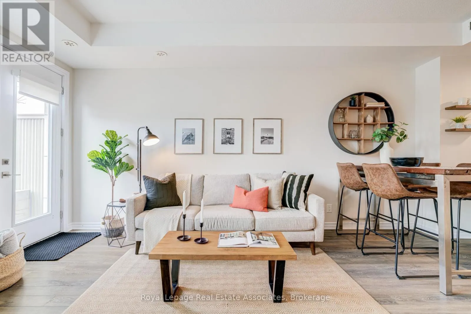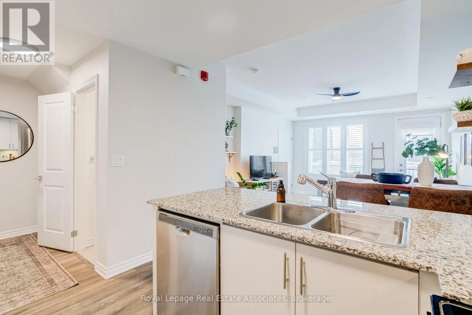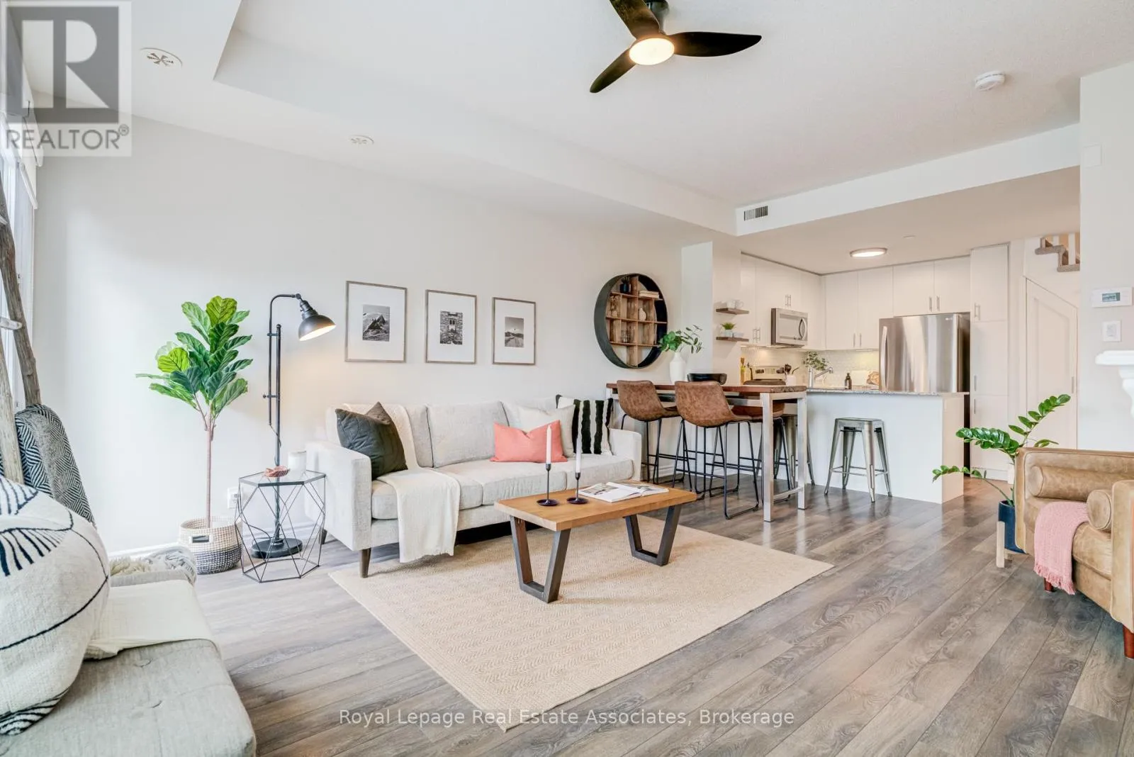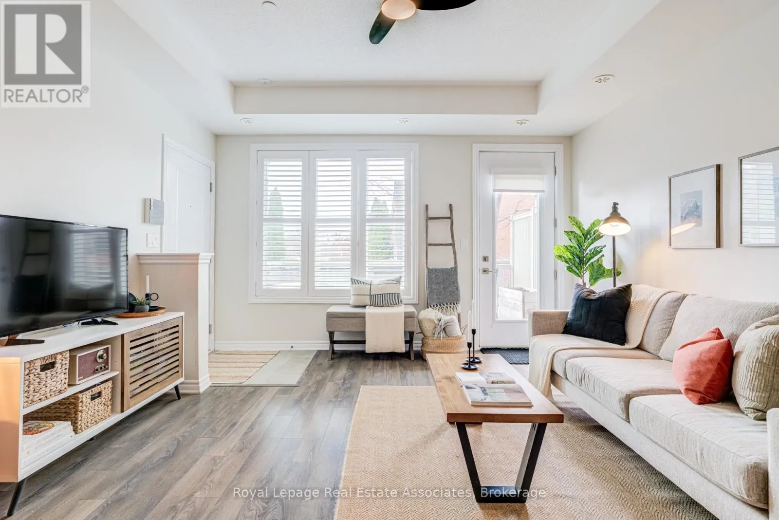Thoughtfully designed with 981 sq ft of bright, functional space, this 2-bedroom, 2.5-bath home features an open-concept main level. Tucked along the outer edge of the complex, this suite enjoys a clearer view and beautiful evening light through its west-facing windows. The private terrace perfect for relaxing evenings and summer entertaining. The modern kitchen is finished with quartz countertops and a sleek backsplash. Upgrades large and small make this a charming, move-in-ready option: next to the kitchen and under the stairs, the owners have added a walk-in storage area, crucial for many uses. You'll find upgraded light fixtures, California shutters in the living room, a roller blind on the patio door, and cordless cellular shades in the bedrooms. This is a welcoming, community-oriented complex centred around a playground and green space. The owners love the ability to walk to cafes (Terminal 3), bakeries (Happy Bakers & Sourdough Garden), restaurants (850 Pizza), yoga studios (Solis), and daily essentials. Sherway Gardens and major highways are a 5 min drive. Enjoy the convenience of underground parking while paying a low maintenance fee. Visitor parking is available right out front of the home. Come be a part of one of Etobicoke's most vibrant and growing communities! (id:27476)