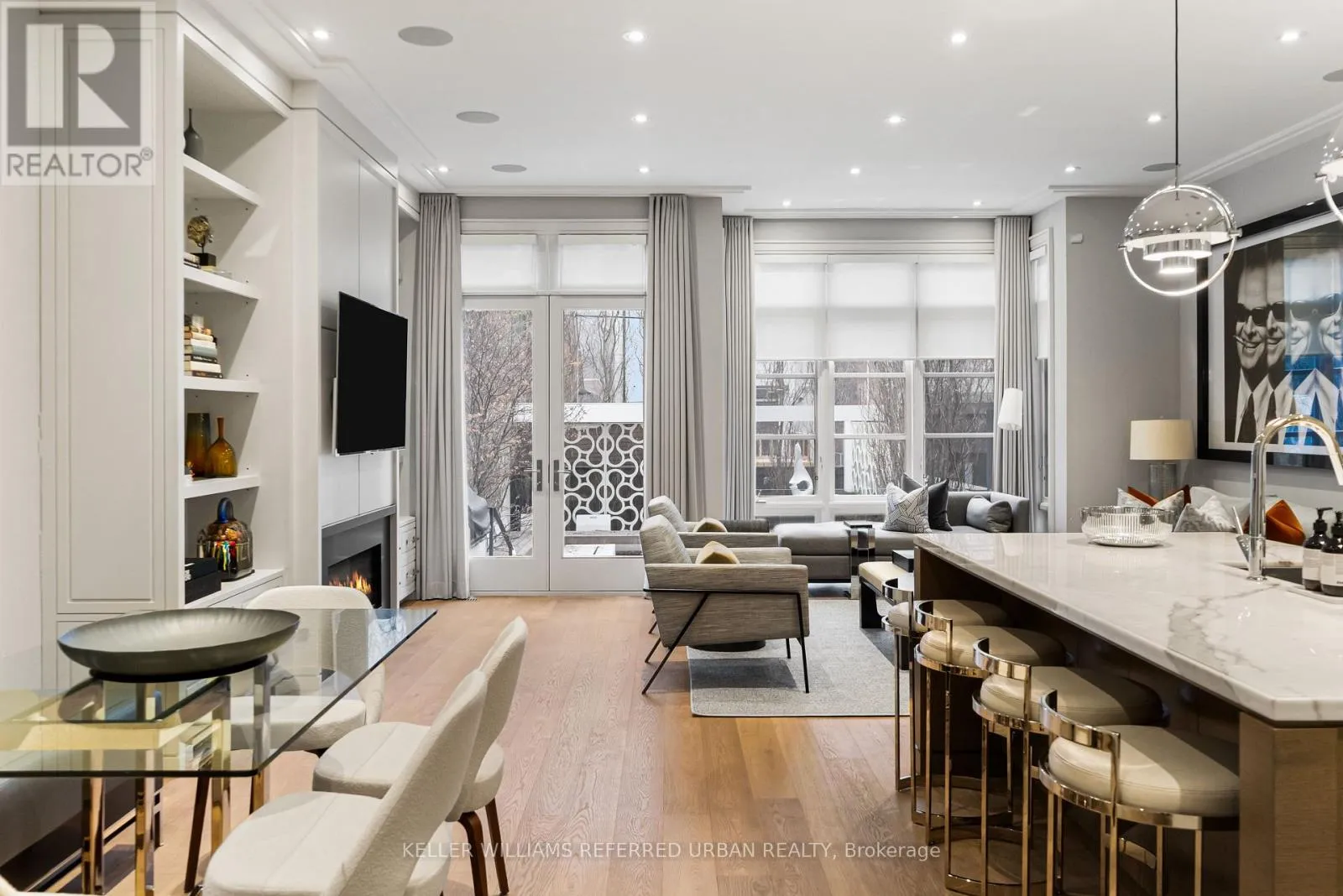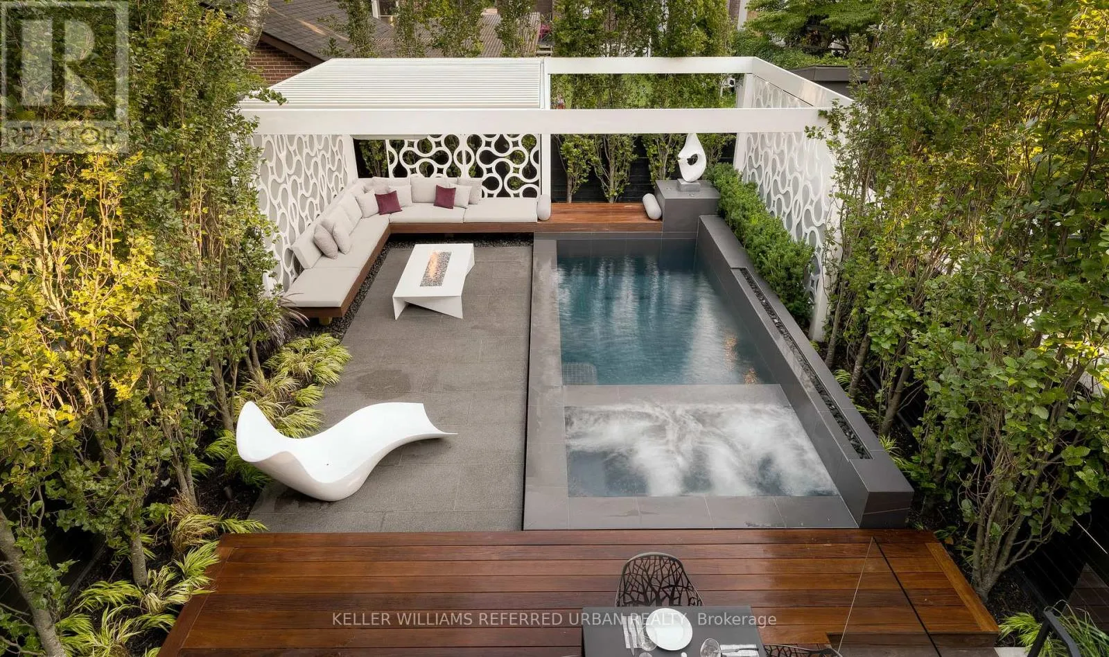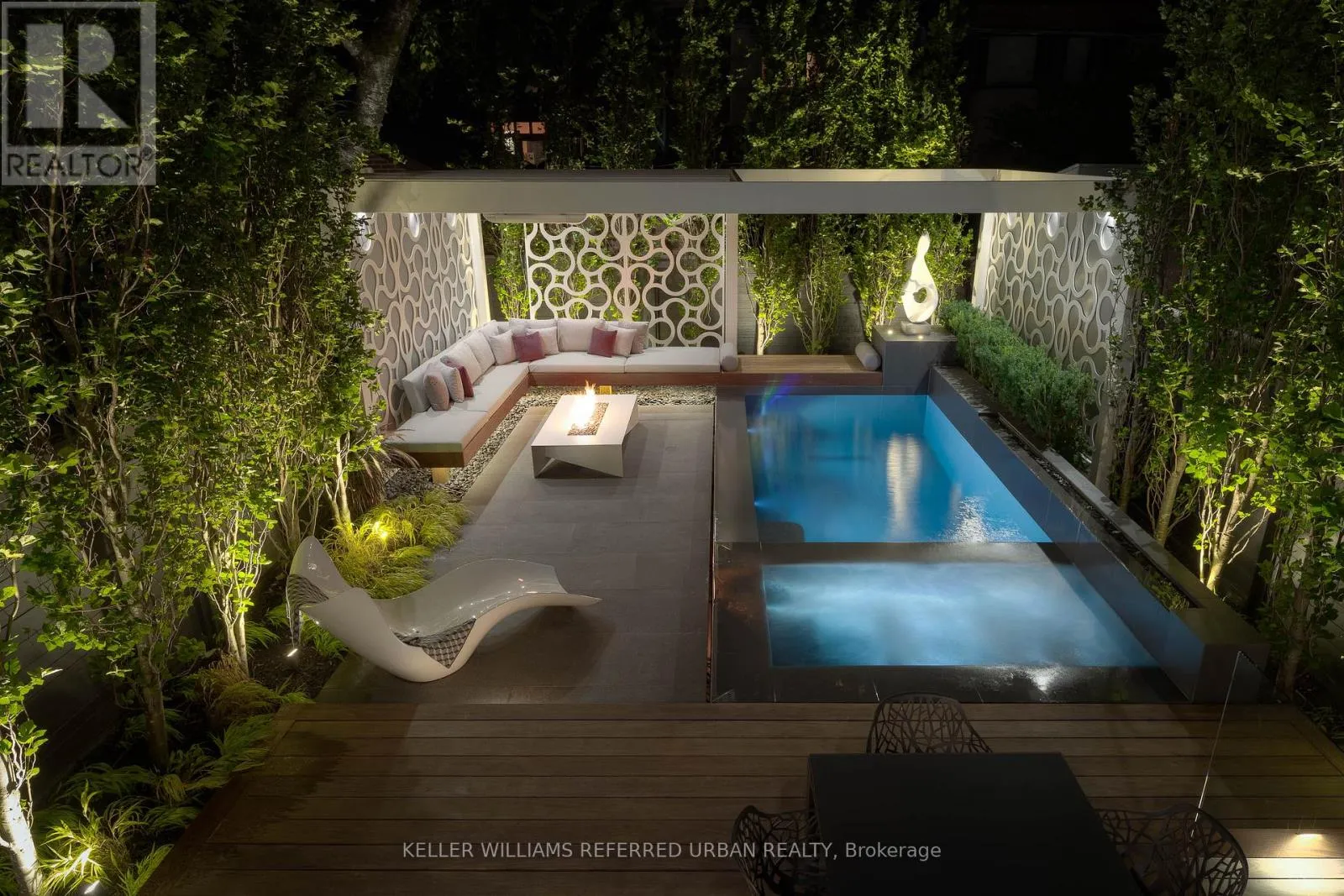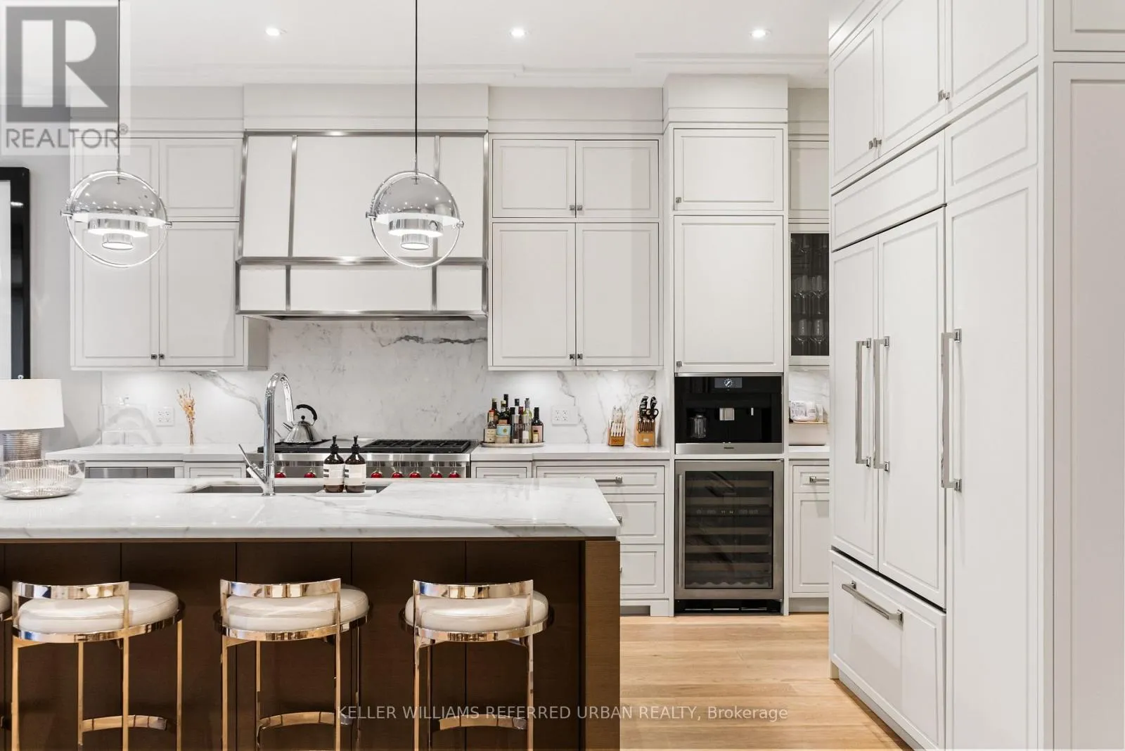 At the heart of the home, a chef's kitchen - featuring a 48" Wolf gas range, an expansive 8-foot marble top island, and bespoke finishes throughout. The adjoining family room is both inviting and refined, anchored by a gas fireplace and seamlessly connected to your private award winning (TopLandscape Design of the Year (2018) backyard oasis - complete with a pool and hot tub, perfect for entertaining or unwinding in total privacy. Upstairs, the second level offers a tranquil retreat. The primary suite evokes a five-star hotel experience, with a gas fireplace, ambient pot lighting, and his and hers walk-in closets. The spa-inspired 5-piece ensuite features a deep soaker tub, steam shower, double vanity, and heated marble floors. A second bedroom on this level includes its own 3-piece ensuite and walk-in closet, while a convenient laundry room completes the floor. The third level offers exceptional versatility - ideal as a secondary primary suite or an executive home office. This stunning space features a gas fireplace, a luxurious 3-piece ensuite, and a private minibar, creating the perfect self-contained retreat. Walk out to a sun-drenched south-facing terrace with captivating CN Tower views. A fourth bedroom with its own private terrace provides additional space for family or guests. The lower level is designed for both lifestyle and function - showcasing a custom, 500 btl. climate-controlled wine cellar, a fully equipped home gym, a media/rec room, and a 3-piece bath. A thoughtfully designed mudroom leads to the heated 1-car garage, while a heated driveway and front steps provide the ultimate convenience. (id:27476)