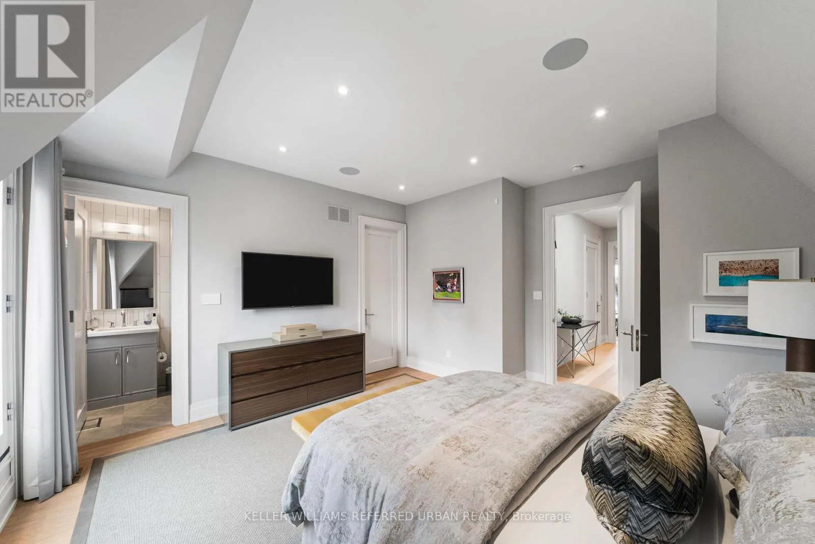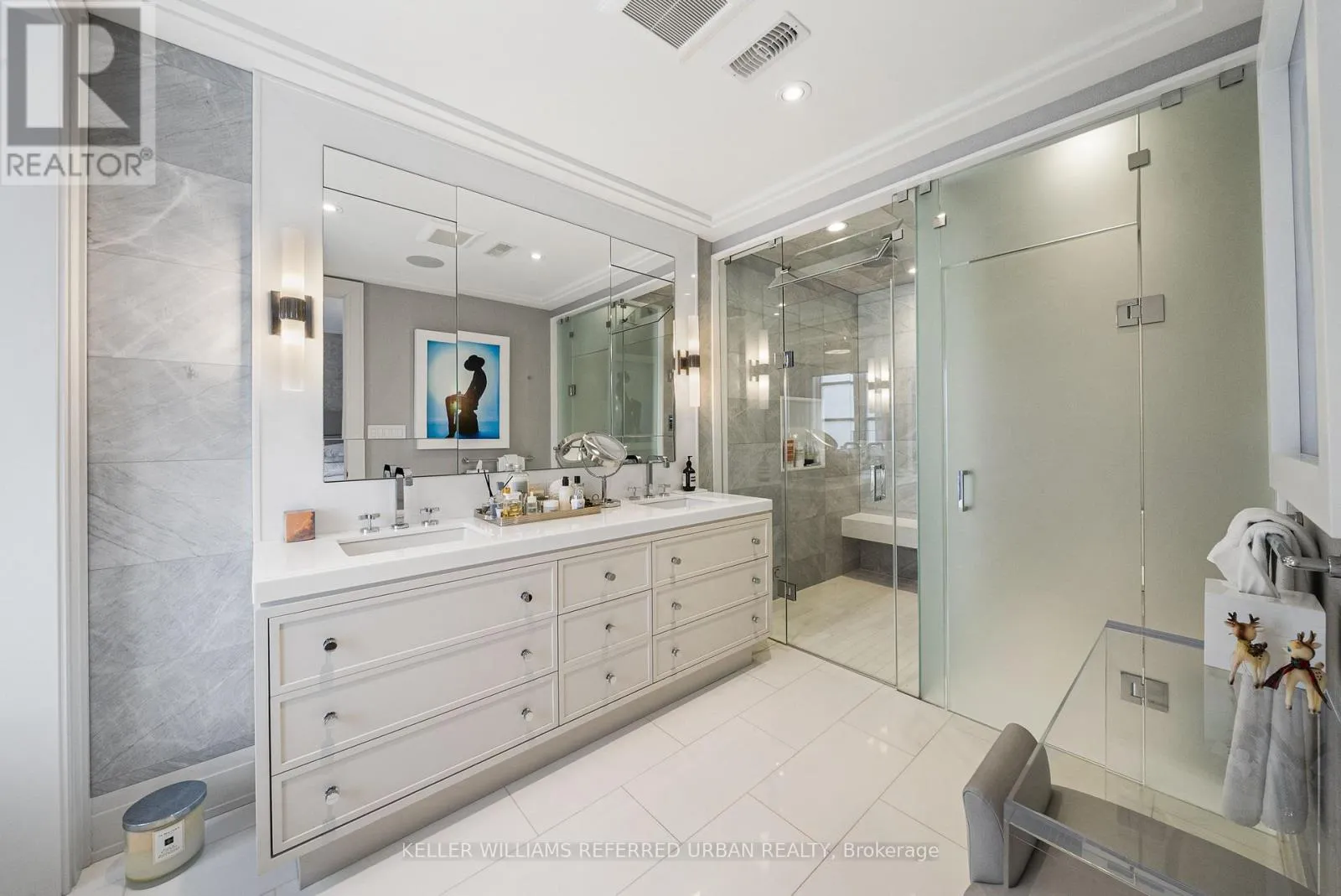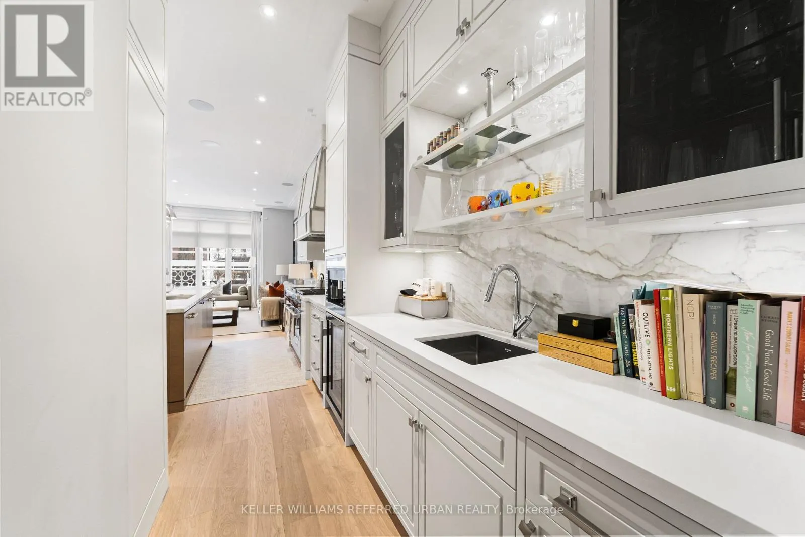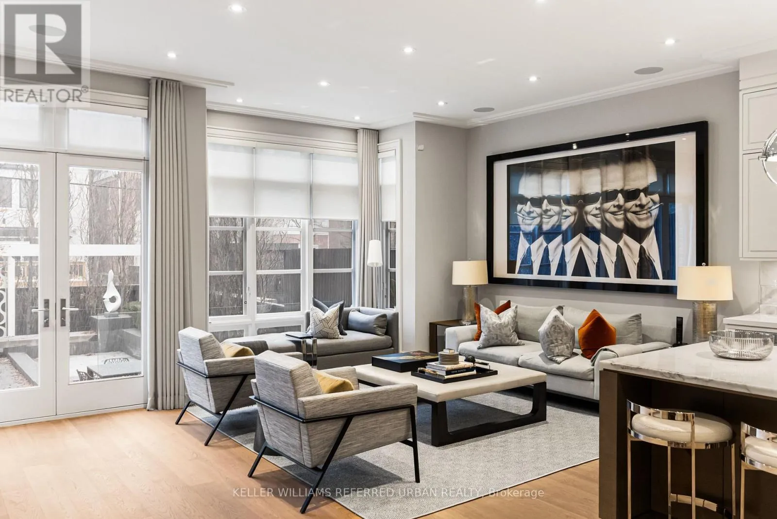 At the heart of the home, a chef's kitchen - featuring a 48" Wolf gas range, an expansive 8-foot marble top island, and bespoke finishes throughout. The adjoining family room is both inviting and refined, anchored by a gas fireplace and seamlessly connected to your private award winning (TopLandscape Design of the Year (2018) backyard oasis - complete with a pool and hot tub, perfect for entertaining or unwinding in total privacy. Upstairs, the second level offers a tranquil retreat. The primary suite evokes a five-star hotel experience, with a gas fireplace, ambient pot lighting, and his and hers walk-in closets. The spa-inspired 5-piece ensuite features a deep soaker tub, steam shower, double vanity, and heated marble floors. A second bedroom on this level includes its own 3-piece ensuite and walk-in closet, while a convenient laundry room completes the floor. The third level offers exceptional versatility - ideal as a secondary primary suite or an executive home office. This stunning space features a gas fireplace, a luxurious 3-piece ensuite, and a private minibar, creating the perfect self-contained retreat. Walk out to a sun-drenched south-facing terrace with captivating CN Tower views. A fourth bedroom with its own private terrace provides additional space for family or guests. The lower level is designed for both lifestyle and function - showcasing a custom, 500 btl. climate-controlled wine cellar, a fully equipped home gym, a media/rec room, and a 3-piece bath. A thoughtfully designed mudroom leads to the heated 1-car garage, while a heated driveway and front steps provide the ultimate convenience. (id:27476)