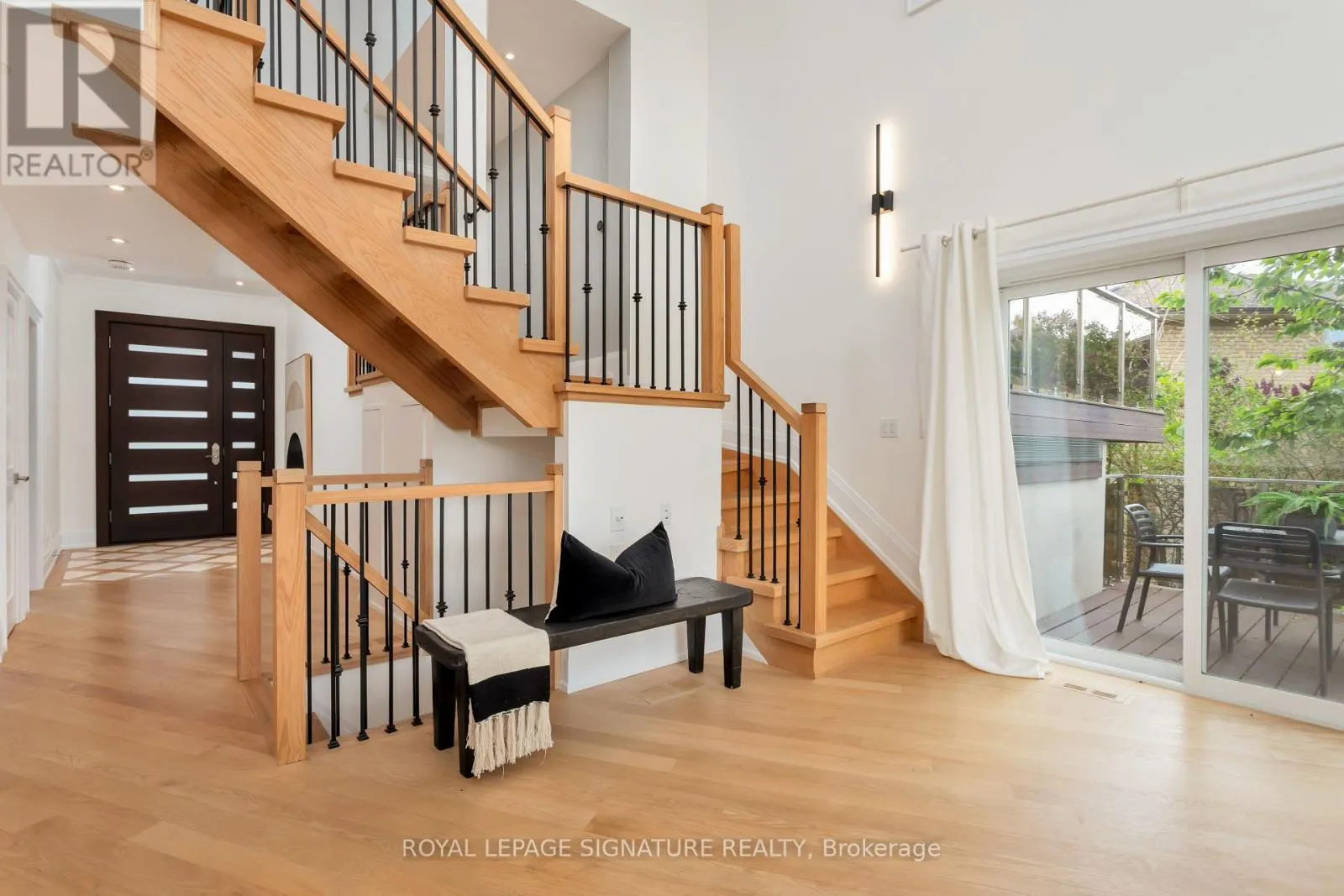 Indoors you will be greeted by a nearly 19ft ceiling in the great room. Windows on every wall ensure this space is sun drenched. The kitchen is a custom German Leicht build, with smart storage solutions, and possesses a steam oven and In sinkerator. Diagonally laid hardwood playfully transitions to a modern hexagon tile in the kitchen. Gas and electric heated fireplaces will keep you warm in the winter months, but if that's not enough, the home has a Sauna with health-benefitting infrared or traditional rock heating. A main floor bedroom with ensuite is perfect for anyone with mobility issues or for guest. Upstairs, the primary bedroom is tucked away on its own floor. The Garage offers two parking spots, epoxy floor & EV Charger. W/O Basement, 3 under deck storage. So much more! 20 minutes to DT core, 10 minutes to Pearson International Airport. W/in coveted St Clements Catchment area. Walk to Etobicoke Farmers Market! (id:27476)