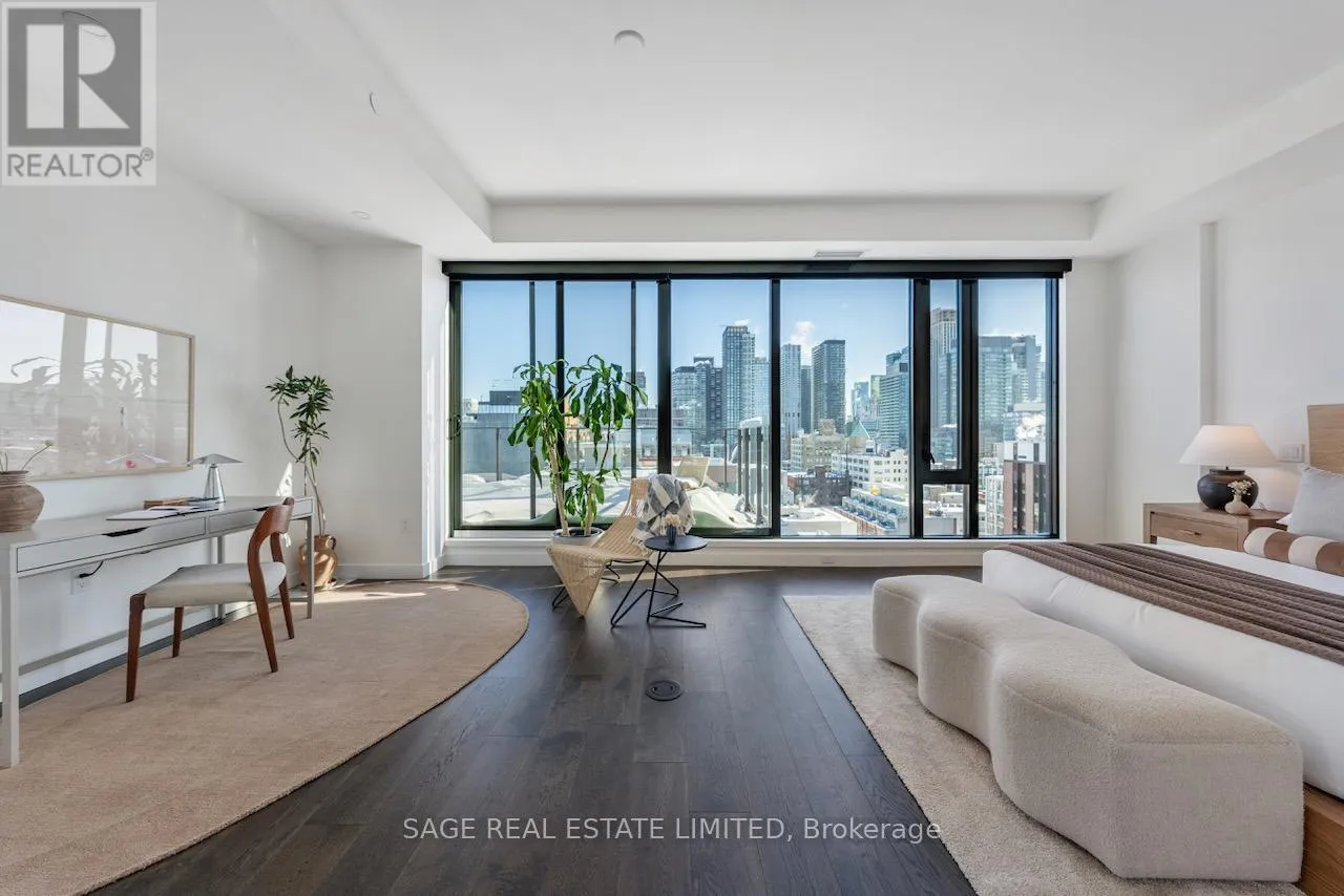 The easy flow from the kitchen to the dining and living rooms add to the relaxed vibe. Host a balcony BBQ while watching summer sunsets. Lounge about in the expansive bedroom suite. Meticulously designed Custom Closet Built-Ins throughout offer exceptional storage while keeping the space organized and liveable. Another added bonus is the desirable split bedroom floor plan combined with the privacy of no buildings peering in. Unobstructed views for miles! The 2nd bedroom; ensuite and walk-in closet are ideal for an office, den, guest or kid's suite. An exceptional suite where light, space and calm come together. (id:27476)