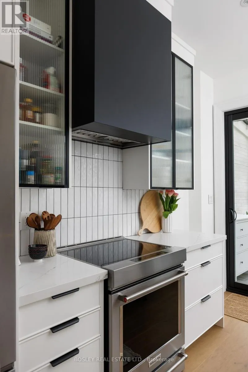 A beautiful brick fireplace and large picture window overlook the front porch, filling the living space with natural light. Out front, the south-facing porch and garden offer a perfect setting for morning coffee or evening unwinding-an inviting extension of the living space in warmer months. The renovated white kitchen is designed for both function and entertaining, featuring premium appliances, smart storage, quartz countertops, and seamless flow through massive floor to ceiling sliding doors to the bright rear sunroom addition-complete with a full foundation-ideal as a mudroom, seasonal lounge, or flexible bonus space. Upstairs, three well-proportioned bedrooms include a spacious primary retreat with wall-to-wall custom built-ins and warm south-facing light. The 2nd floor skylight floods the 2nd floor with daylight and has automatic rain sensors to shut tight at the first sign of rain! The fully renovated lower level (completed with permits) adds exceptional living space with in-floor radiant heating, full waterproofing and sump pump, and a separate walkout to the front yard. Enjoy a cozy recreation room, a sleek 3-piece bath, dedicated laundry, and a versatile workshop area. Beyond the rear garden, A private laneway garage comfortably accommodates a large vehicle + storage. Perfectly positioned just steps to Roncesvalles' beloved shops, restaurants, parks, and within the coveted Fern School district-this is turnkey city living in one of Toronto's most vibrant neighbourhoods. (id:27476)