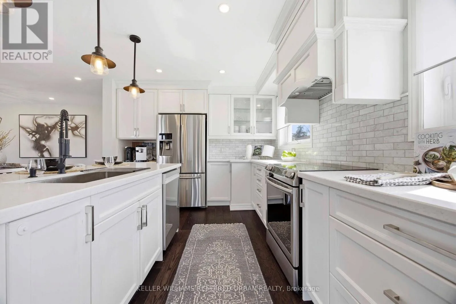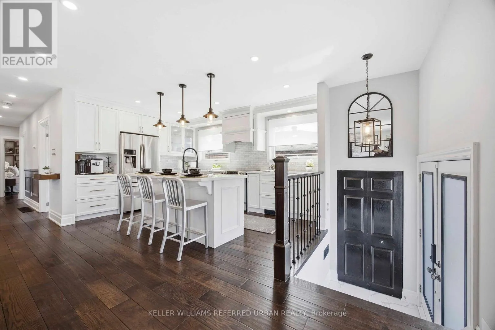 Featuring immense pride of ownership, the home boasts a high-end 2018 renovation including a gourmet chef's kitchen with a massive social island, premium stainless steel appliances, and extensive cabinetry. The bright, open-concept main floor is finished with engineered hardwood, pot lights, and a designer fireplace mantle (2024).Versatile Living & Income Potential: The fully finished lower level features a true separate side entrance, a second full kitchen with a gas stove and new 2024 fridge, a large bedroom, and a spacious recreation room with new 2022 carpeting-ideal for an in-law suite or rental potential.Top-Tier Upgrades & Exterior Oasis: Enjoy a private, deep lot (142 ft) professionally landscaped with interlock stone (2020), a cedar perimeter fence (2021), and a smart in-ground sprinkler system front & back (2018/19). Smartphone-controlled garage motor.Location Highlights: Perfectly situated just steps from Grandravine Park, TTC/Subway stations, and York University, with lightning-fast access to Highways 401 and 400. (id:27476)