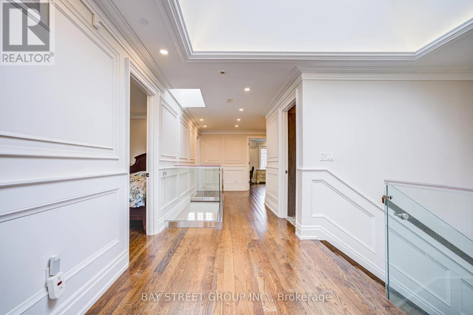 5ft on the main floor, extremely rare 12 ft in the finished W-A-L-K-O-U-T basement. Stone front and 9-feet grand double door offers impressive curb appeal. The gourmet kitchen boasts premium countertops, backsplash, custom cabinetry & Wolf appliances. A bright and spacious home office on the main floor. Each of the four bedrooms has its own ensuite bath. Spa-inspired bathrooms showcase lavish details and premium fixtures. Natural light floods the interiors all day along through expansive windows and THREE stunning SKYLIGHTS. House also equipped with FOUR high end GAS FIREPLACES that offer your family endless warmth and cozyness. The finished walkout basement features 12-feet soaring ceiling, HEATED FLOOR, additional bedroom, bathroom, and a versatile recreation area. Additional features include built-in central audio system and surveillance system. Sprinkler system installed throughout front & back yard. Prime location: steps from public transit and plazas, walking distance to schools, Earl Bales Park, trails, and the community centre. Conveniently close to Hwy 401, Yorkdale Shopping Centre, Don Valley Golf Course, top private schools, and within the boundary of the highly ranked William Lyon Mackenzie CI (renowned MaCS program). This property delivers luxury, functionality, and a Prime location all in one. A Must See! (id:27476)