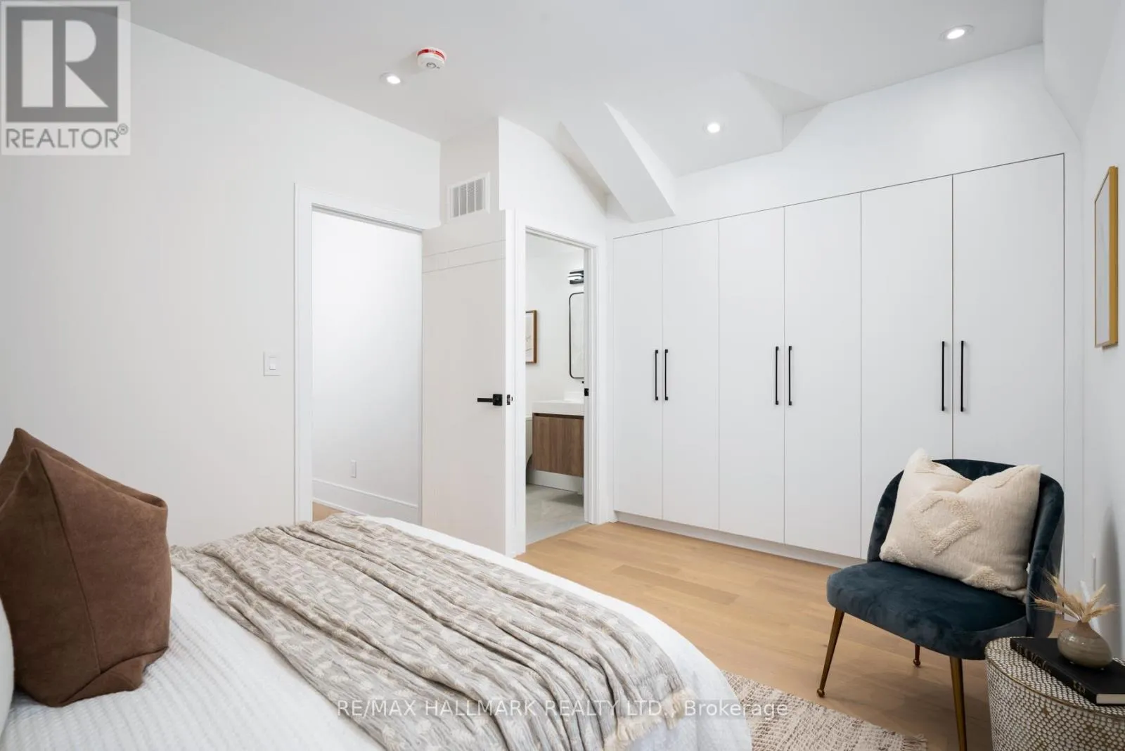 The home boasts hardwood flooring, soaring ceilings, solid wood doors, custom closets with ample storage, pot lights throughout, built-in speakers on the main floor, glass railings & is enhanced by a rare & sleek in-home elevator providing luxury & comfort. The open concept on the main floor offers living & dining areas featuring a floor-to-ceiling window, herringbone hwd floor, fluted accent walls, a powder room, a foyer with a closet, and an elegant glass railing. The chef's kitchen is equipped with quartz countertops & backsplash, custom cabinetry, a pot filler, a center island, and a wall bar with a wine fridge. The family room showcases a fireplace with a fluted accent wall panel and a large sliding door to access the patio and garage. The 2nd & 3rd floors feature spacious bdrms with their own ensuite baths, custom closets & balconies, complemented by skylights that fill the home with natural light. The sound-proofed basement offers 8-ft ceilings, a bright bedroom with an ensuite bath, a powder room, vinyl flooring, pot lights, its own laundry, a sliding door & a walk-out. Mechanical & smart features include HRV system, central vacuum, Nest thermostat, steel moment frame structure, heat pump with air handlers, foam insulation in ceilings and basement walls, sump pump, backwater valve, & full waterproofing. Additional highlights include two separate laundries, custom vanities, security cameras, a Ring video doorbell, & two hydro meters. A MUST SEE! (id:27476)