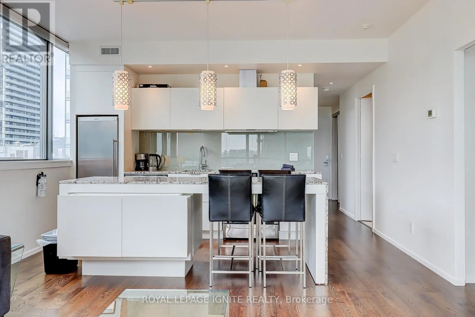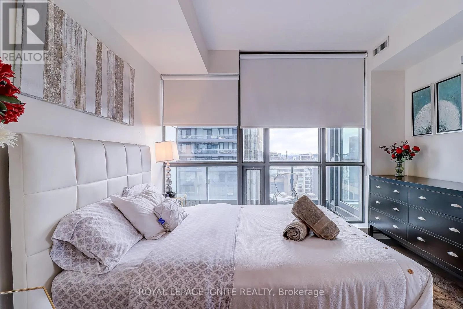 King And Charlotte Stunning Corner Suite in the Coveted Charlie Building! This bright and airy home features floor-to-ceiling windows that bathe the space in natural light, offering spectacular city and lake views. The open-concept design combines modern sophistication with sleek, stylish finishes throughout. The spacious granite kitchen with an expansive eat-in countertop is perfect for both cooking and entertaining.