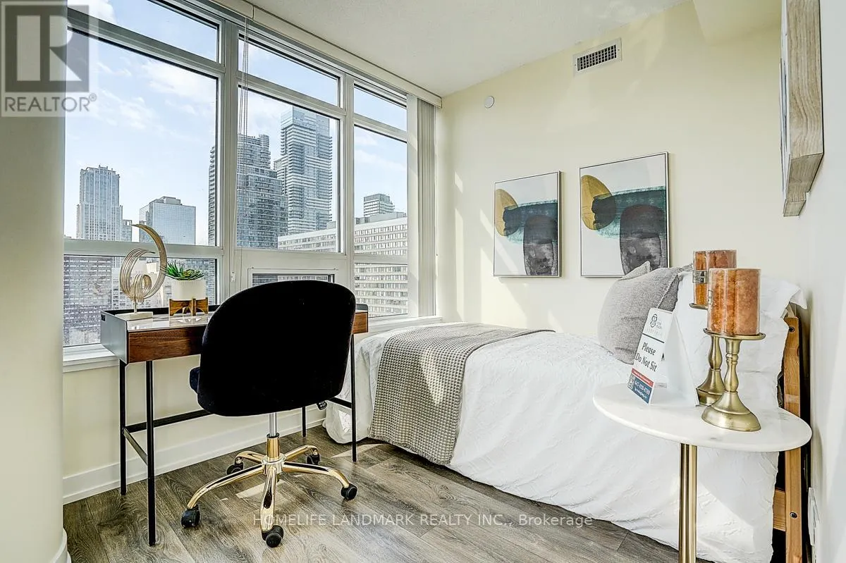 Church and Carlton Enjoy unobstructed South And East Views Of The City With A Large Wrap Around Balcony, 3 Bdrm, 2 Bath. Corner Unit With Window each bdrm & Tons Of Natural Light. High Quality Material Throughout Including Gorgeous laminate Floors, South West Exposure With Great Balcony. Walking Distance To Shops, Transportation, Yonge Dundas Square, Ryerson, U Of T And Some Of The Best Restaurants In The City.