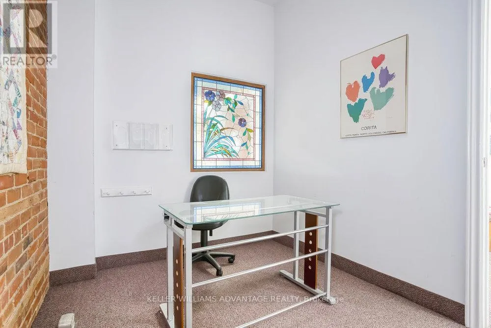 Space includes three levels plus basement with walk-out. This big, bright, beautiful property is exquisitely adorned with exposed brick, French doors, and stained glass. Fabulous extras include a convenient staff kitchen area, four washrooms, and two private, fenced parking spots at rear of building. Fire escapes, fire alarms, security system and emergency exit lighting provide excellent safety features. Must be seen! (id:27476)