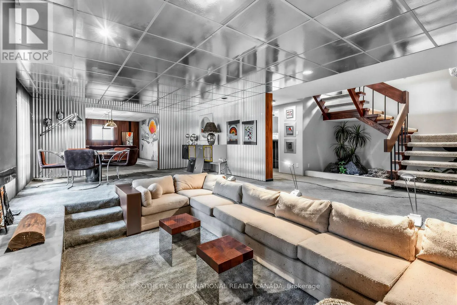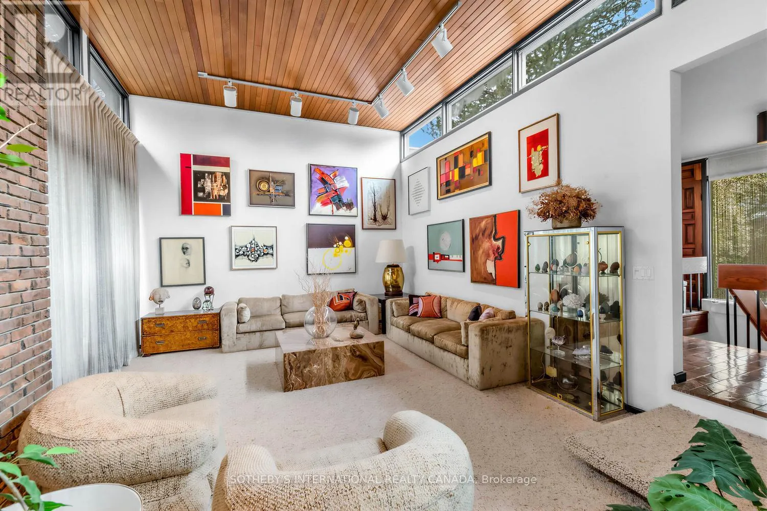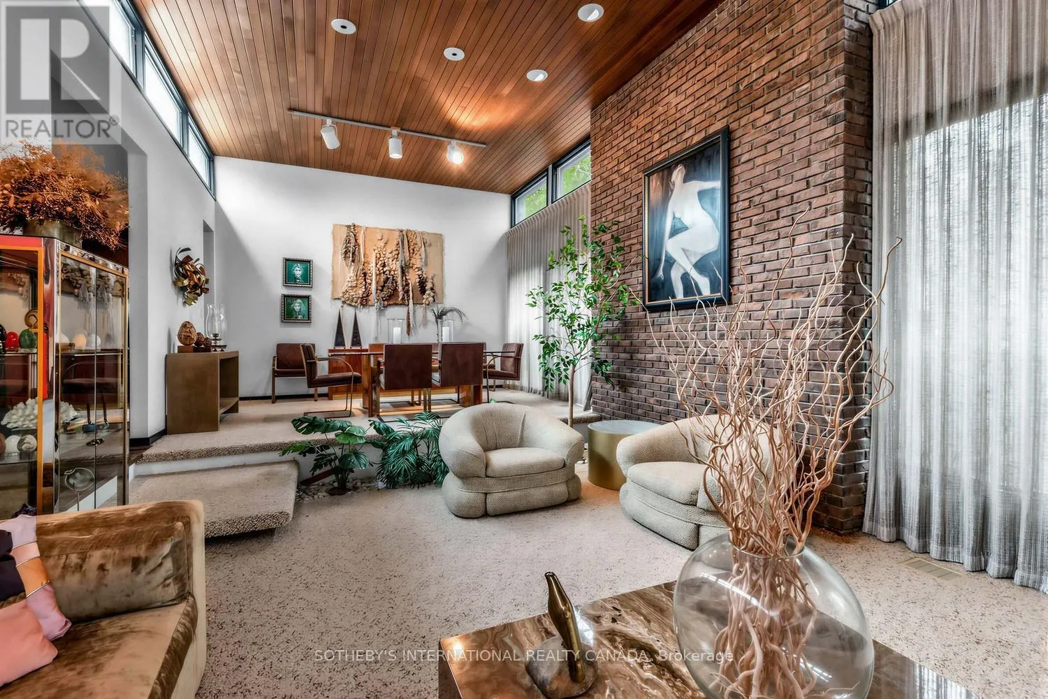 The main level spans approximately 2,844 sq. ft. and features a thoughtfully designed layout with 4 bedrooms, including a spacious primary retreat with a 5-piece ensuite. The home showcases generous principal rooms that include a sun-filled living room with floor-to-ceiling windows and a formal dining room that overlooks the living space. The kitchen connects seamlessly to a warm family room that offers a walk-out to an expansive deck and creates ideal indoor-outdoor living.A defining feature highlights the dramatic living area, which boasts soaring ceilings, rich wood detailing, and oversized windows that flood the interior with natural light. The design reflects a striking mid-century modern influence and provides a unique canvas to update, renovate, or enjoy as-is.The fully finished lower level spans approximately 2,844 sq. ft. and expands the living space with a large recreation room that features a fireplace, sunken sitting area and a walk-out to the garden. The lower level also includes a billiards or games room, a separate sitting area, a bar, and extensive storage, which together support both family living and entertaining on a grand scale . The property includes an attached 2-car garage and a private drive that accommodates additional parking. The home sits in a quiet, established neighbourhood that offers a strong sense of community and convenient access to top schools, parks, and amenities .This property presents a rare opportunity to secure a substantial home on a prime lot in one of Toronto's most coveted enclaves. (id:27476)