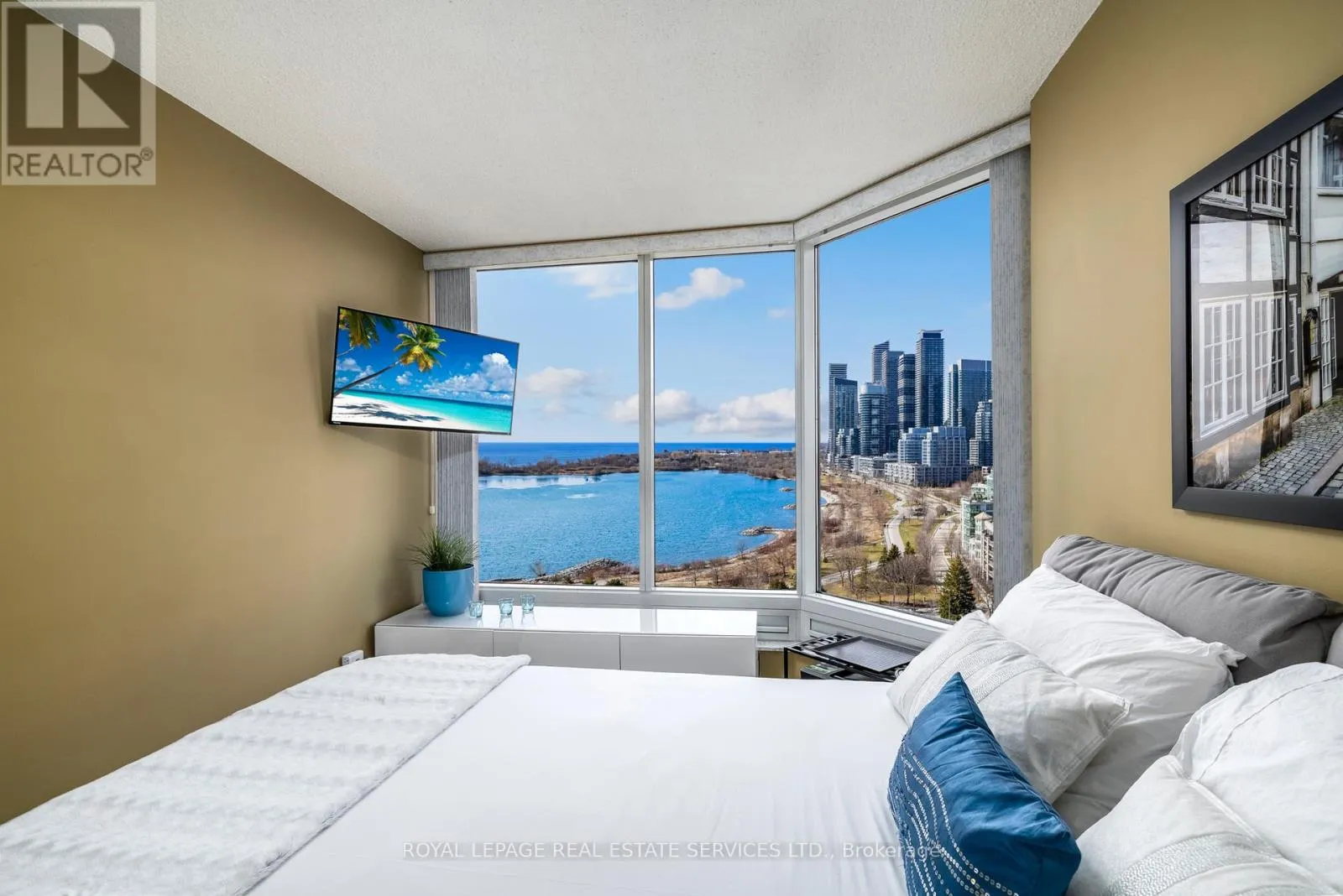Cross Streets: Palace Pier/Lake Shore. ** Directions: Lake Shore/Palace Pier. Suite 1609 is a modern, flow-through condominium residence, with 1,388 square feet of refined living space, 2-bedrooms, 2 full bathrooms, and infinite water views and tranquil lake vistas. This trophy suite offers a rare blend of space, serenity, and sophistication in the sky. Palace Place is Toronto's most luxurious waterfront condominium residence.