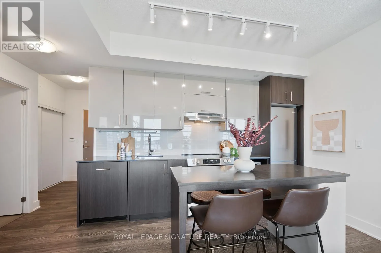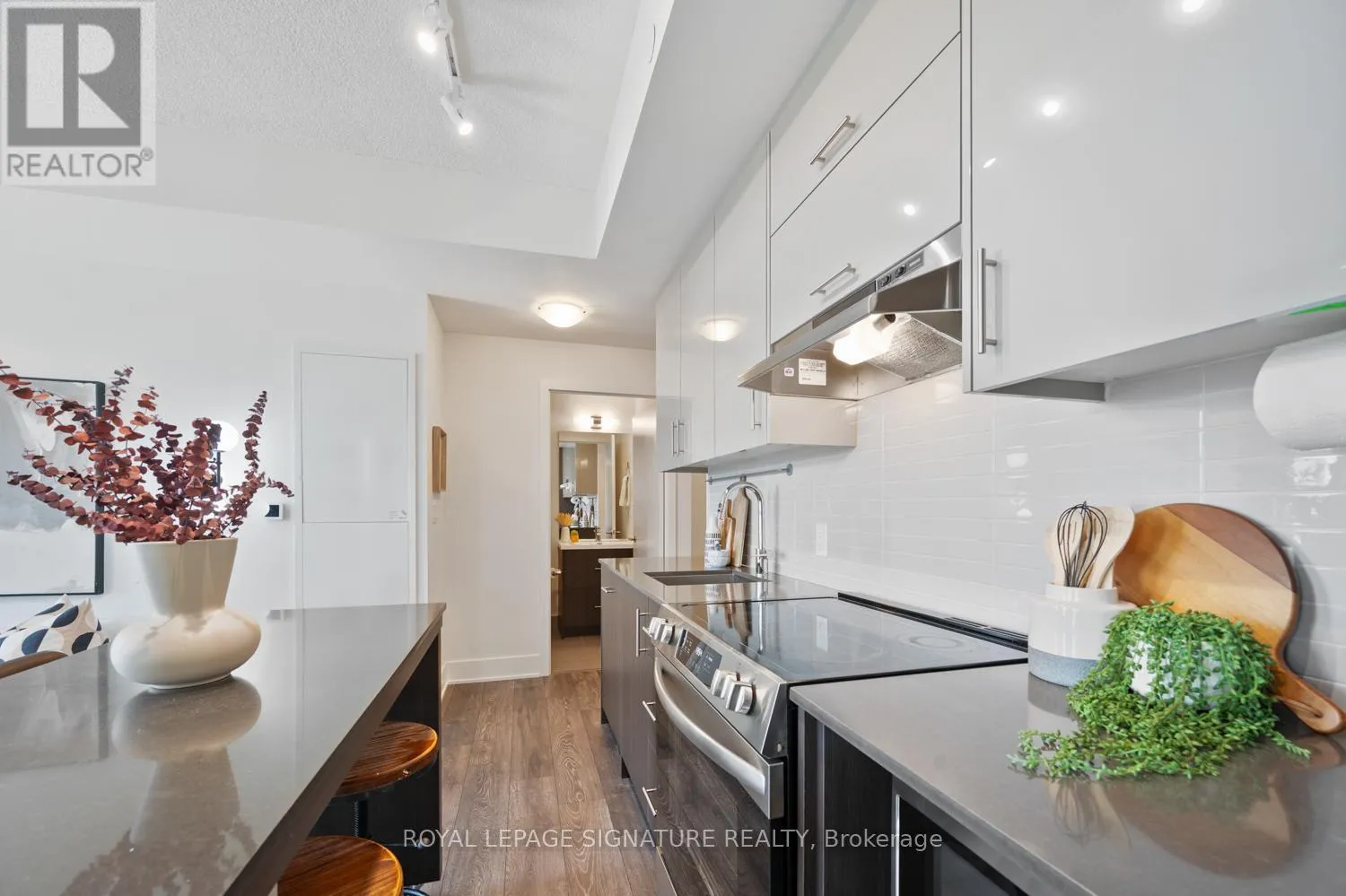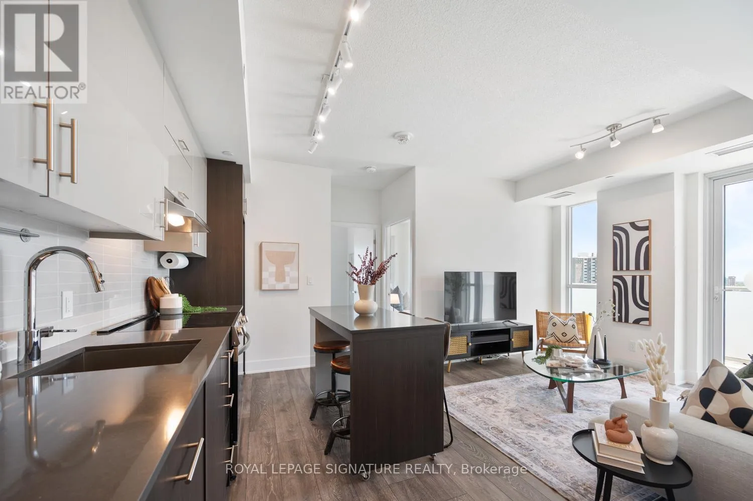The main terrace balcony flows across one whole side of the suite, from the living room to the bedroom, with clear south east facing 180 degree views on full display (and yes, that's the CN Tower making a cameo, just to flex your city status a little...) The second balcony is a private escape, ideal for sunrise coffee sips. Inside, despite being steps from the DVP & Don Mills Subway Station, the suite is shockingly quiet.... Like, did the city shut down? That quiet. The pretty kitchen is functional & clever, with sleek stainless steel appliances, a movable island that adapts to your lifestyle, with plenty of counter & storage space. Cooking, serving, or dancing around with a glass of wine, this space gets it. Perfect for WFH days, midday naps, or ignoring Slack with intention. And the building? No slouch. There's a modern gym, party room, rooftop terrace, & even a rec room for when your social battery hits 5%. The suite comes with a convenient storage locker to keep your seasonal gear out of sight but within reach. (Looking at you, inflatable paddle board.) You're also walking distance to everything you need & more -- Fairview Mall, groceries, cafes, parks & top-rated schools like Kingslake & Brian PS. With a Walk Score of 85 & Transit Score of 77, you're connected, mobile & always one step ahead of traffic. CN Tower in view, the energy's bright, come for the glow, stay for the life done right. (id:27476)