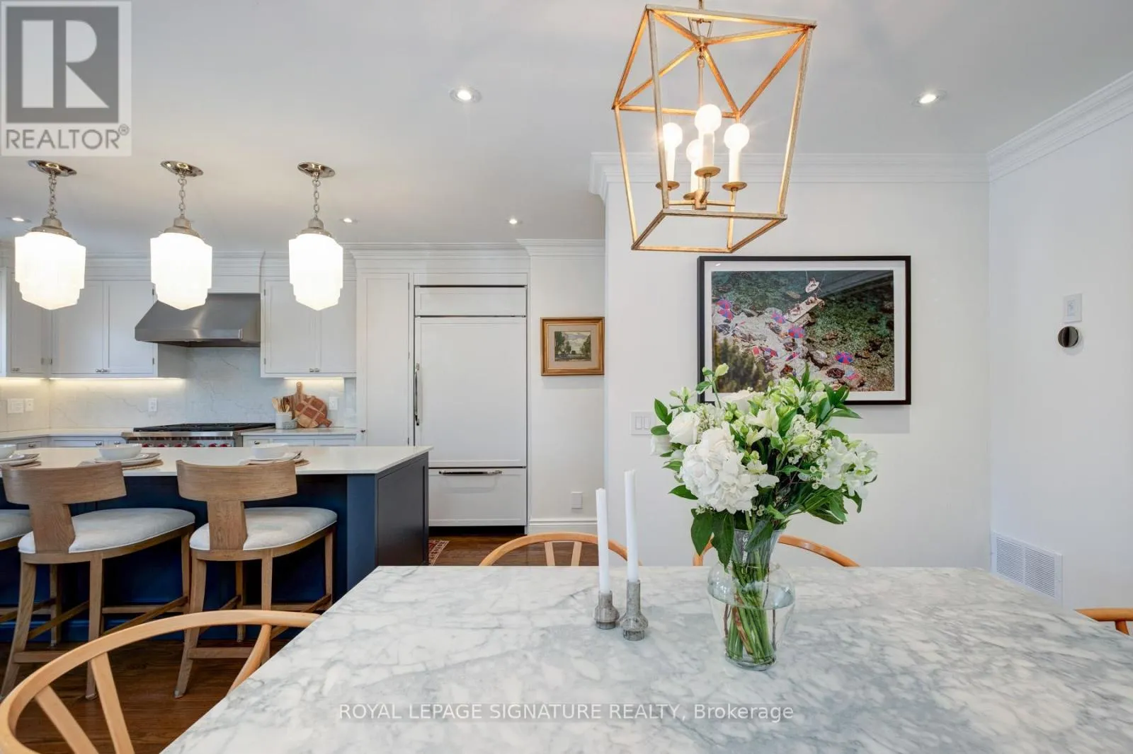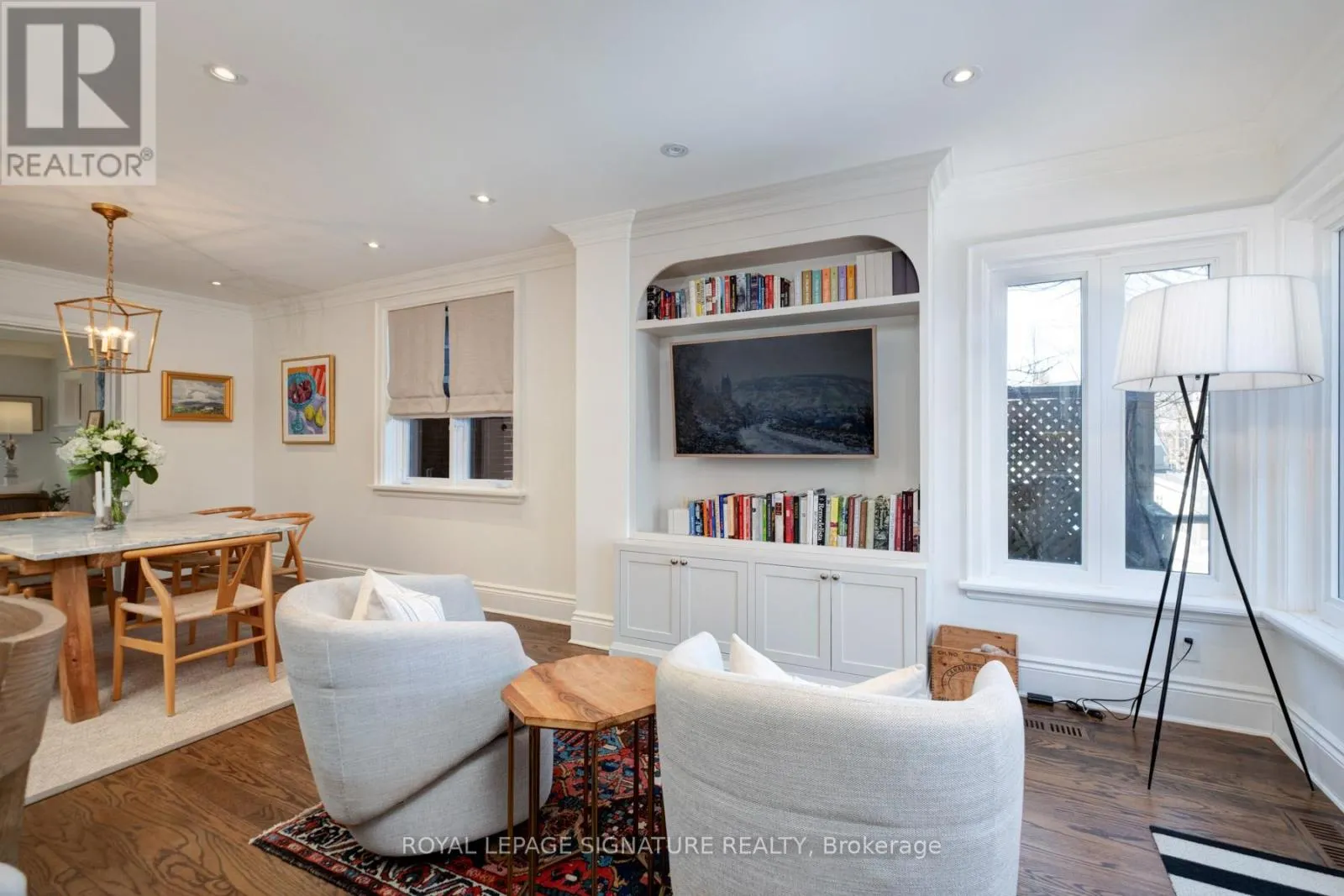 From the moment you step inside, the home balances classic elegance with modern sophistication. Original leaded glass windows honour its heritage, while warm oak floors, custom millwork, and curated finishes create an atmosphere that feels both refined and inviting.The main floor is designed for living well - from intimate dinners to relaxed evenings, the seamless flow between living, dining, and kitchen spaces encourages connection without sacrificing comfort. The chef's kitchen is both beautiful and functional, featuring premium appliances, custom cabinetry, and a picture window overlooking the private landscaped backyard.Upstairs, three thoughtfully designed bedrooms provide space to retreat and recharge. The primary suite offers custom wardrobes and a spa-inspired marble ensuite. Skylights and generous storage enhance the sense of light and ease throughout the level.The lower level extends the living space with 8-foot ceilings, radiant heated floors, a full bathroom, abundant storage, and a 1,000-bottle wine cellar.Outdoors, landscaped grounds, a stone front porch, and a backyard deck create a private urban oasis.A rare opportunity to own a meticulously renovated, move-in-ready home in one of Toronto's most coveted neighbourhoods. (id:27476)