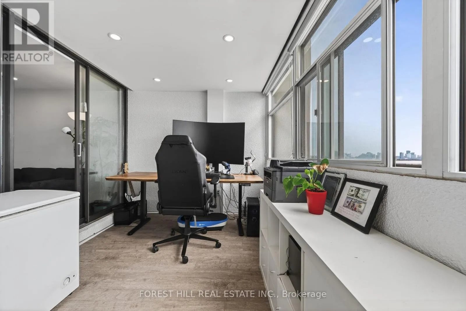 Bathurst/Finch Welcome to your modern, sun-filled retreat at 100 Antibes Dr - a beautifully renovated 2-bed,2-bath condo offering sleek contemporary living with an abundance of space and light. This upgraded suite features a stylish modern kitchen, complete with clean finishes and afunctional eat-in layout, along with spotlights throughout for a bright and polished ambiance. Enjoy a large L-shaped living/dining area with laminate flooring, leading to a spacious south-facing solarium ideal for extra living space or a home office.