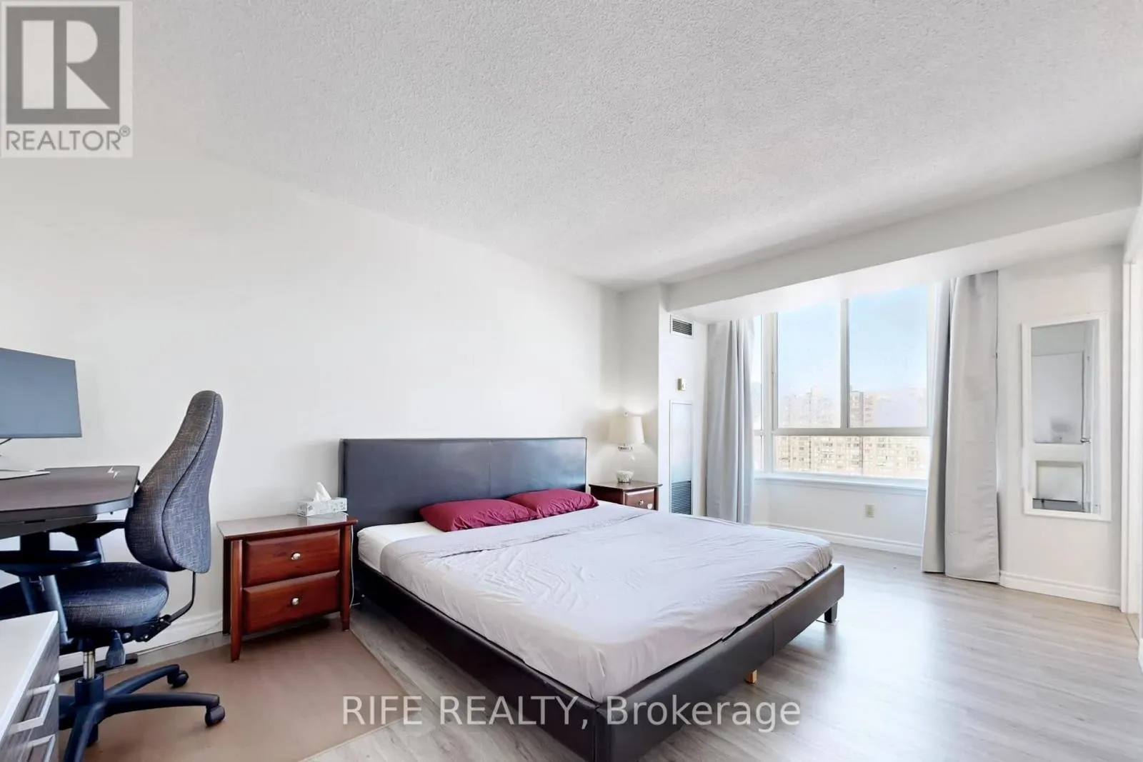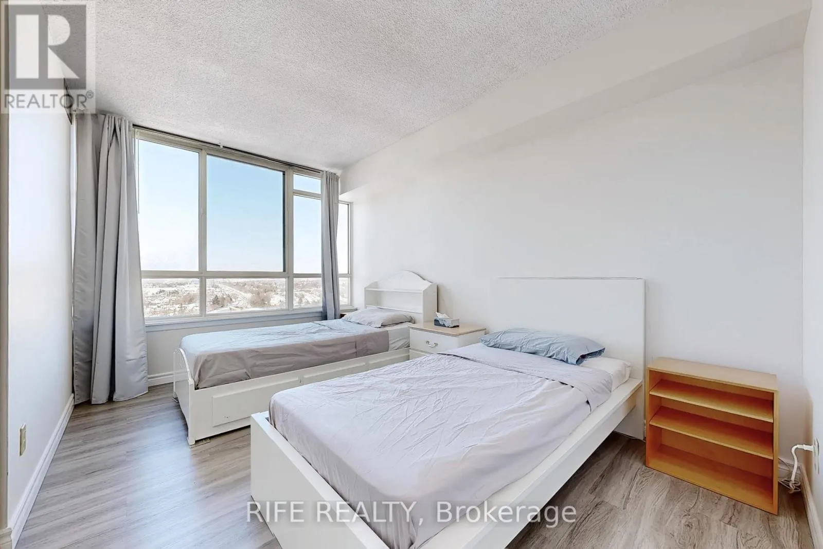 Cross Streets: Warden/Steeles. ** Directions: East of Warden. Bright & Spacious Corner Unit Approx. 1,300 Sq. Ft. Newly renovated with laminate flooring throughout. This sun-filled suite offers 2 large bedrooms, 2 full bathrooms, plus a fully enclosed den with door and window, featuring breathtaking, unobstructed views-easily convertible into a third bedroom, home office, or guest room. The primary bedroom includes a private ensuite, walk-in closet, and elegant bay window.