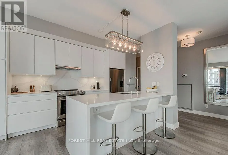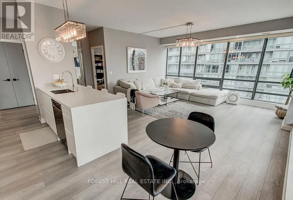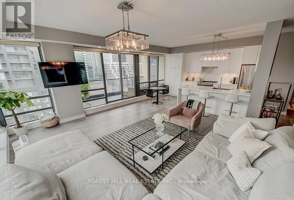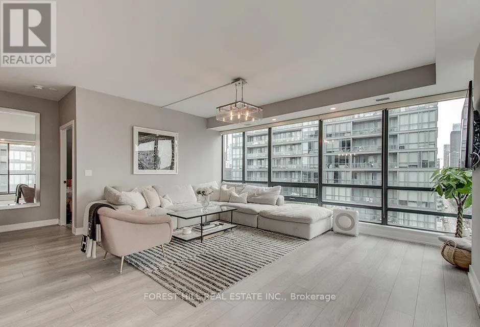 Enjoy indoor-outdoor living with a terrace-sized balcony, perfect for morning coffee or evening entertaining. The open-concept kitchen is ideal for hosting, featuring a family-sized breakfast bar, quartz countertops, and upgraded cabinetry. Meticulously renovated in 2019 with over $200,000 in upgrades, including a luxurious primary ensuite finished in Statuario marble, custom California Closets with built-in jewelry drawer, and high-quality finishes throughout. The well-designed layout offers both privacy and flow, making it ideal for professionals, couples, or downsizers seeking refined urban comfort. This exceptional residence includes parking and locker, providing convenience and value in the heart of the city. The Hudson offers outstanding amenities and an unbeatable location-just steps from transit, King West, the Fashion District, Financial Core, Rogers Centre, Harbourfront, theatres, fine dining, and more. With its modern upgrades, sun-soaked exposure, and iconic views, this rare corner suite checks every box. A true gem in a premier downtown address-move in and enjoy the ultimate urban lifestyle! (id:27476)