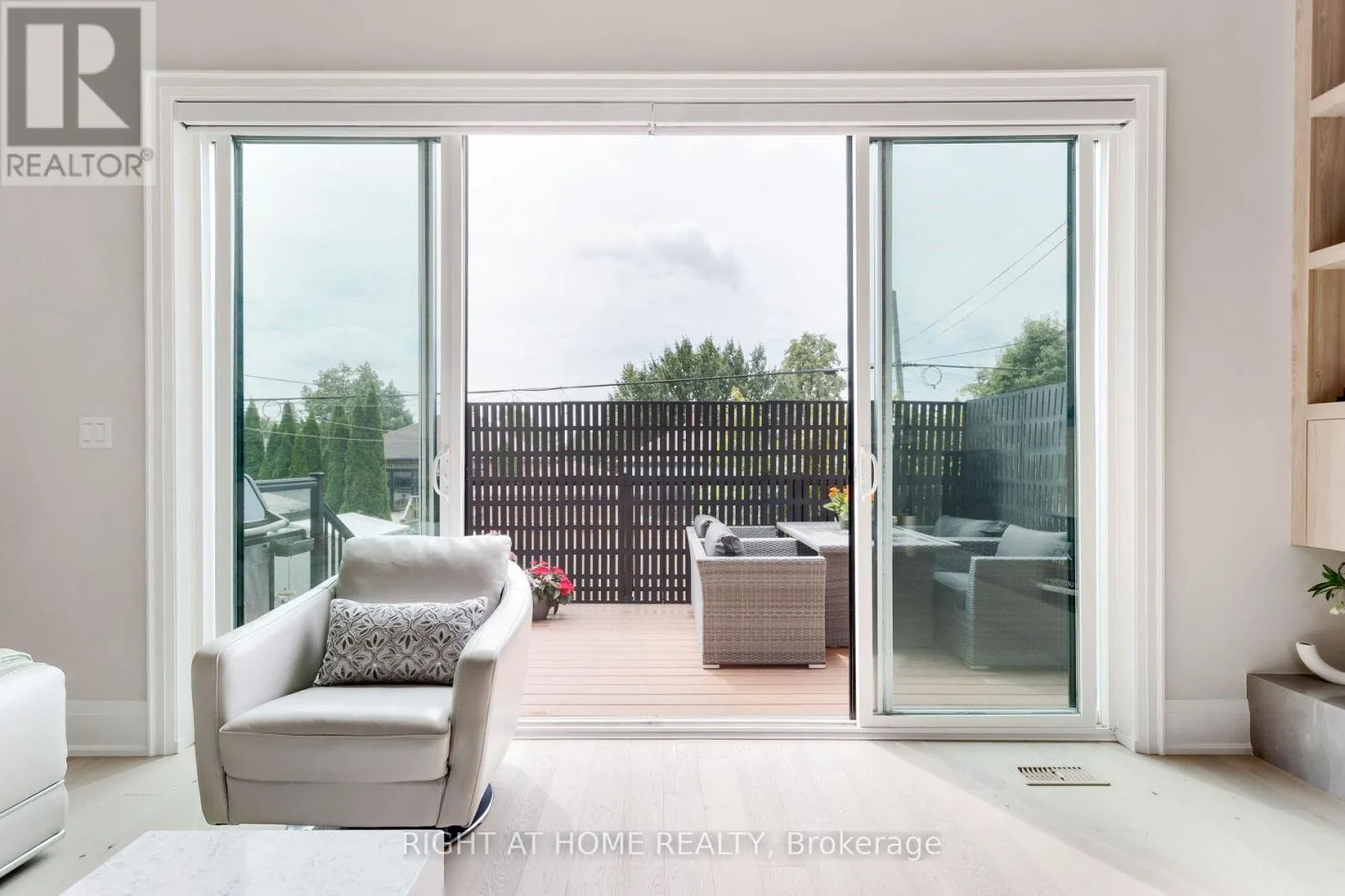 The beauty of the upgraded designer Cameo kitchen is enhanced by a 9 ft quartz island with waterfall, double sided breakfast bar and Italian marble backsplash. The upgraded Fisher Paykel appliances and bounty of custom kitchen cabinetry is complimented by the 11 ft porcelain clad gas fireplace with floating custom shelving. Along with the accompanying dining area this space is a dream for families and entertaining. The 6 ft porcelain floors in the separate dining area create a bright and quiet elegance along side the beautiful 5" hardwood floors throughout. The glass railings initiate a seamless transition as you move to the upper level of the home where you will find 3 large bedrooms. The generous primary suite is accompanied by a large on suite adorned with a large free standing tub and separate glass enclosed shower. The walk in closet offers an abundance of custom cabinetry. As you move to the lower level of the home you are met with a bright open concept space with 10.5 ft ceilings and outfitted with your own private luxury gym space. In the backyard you will enjoy peace and tranquility on the expansive maintenance free composite deck overlooking the large fully fenced newly sodded yard. The location is ideal as you will be 15 min to downtown , 100m from a large park with pool and community centre, 2 min from the Mimico Go station and Sanremo Bakery at the top of the street. With 143ft of total lot depth . Remote Hunter Douglas Blinds were also newly installed for added privacy. (id:27476)