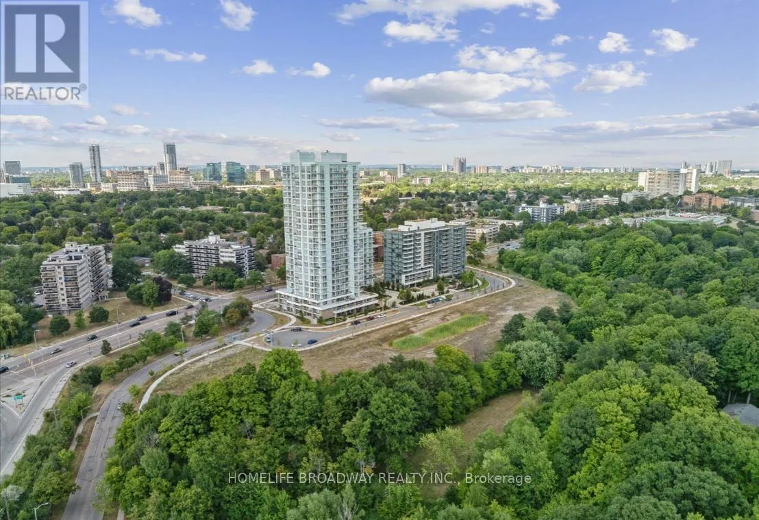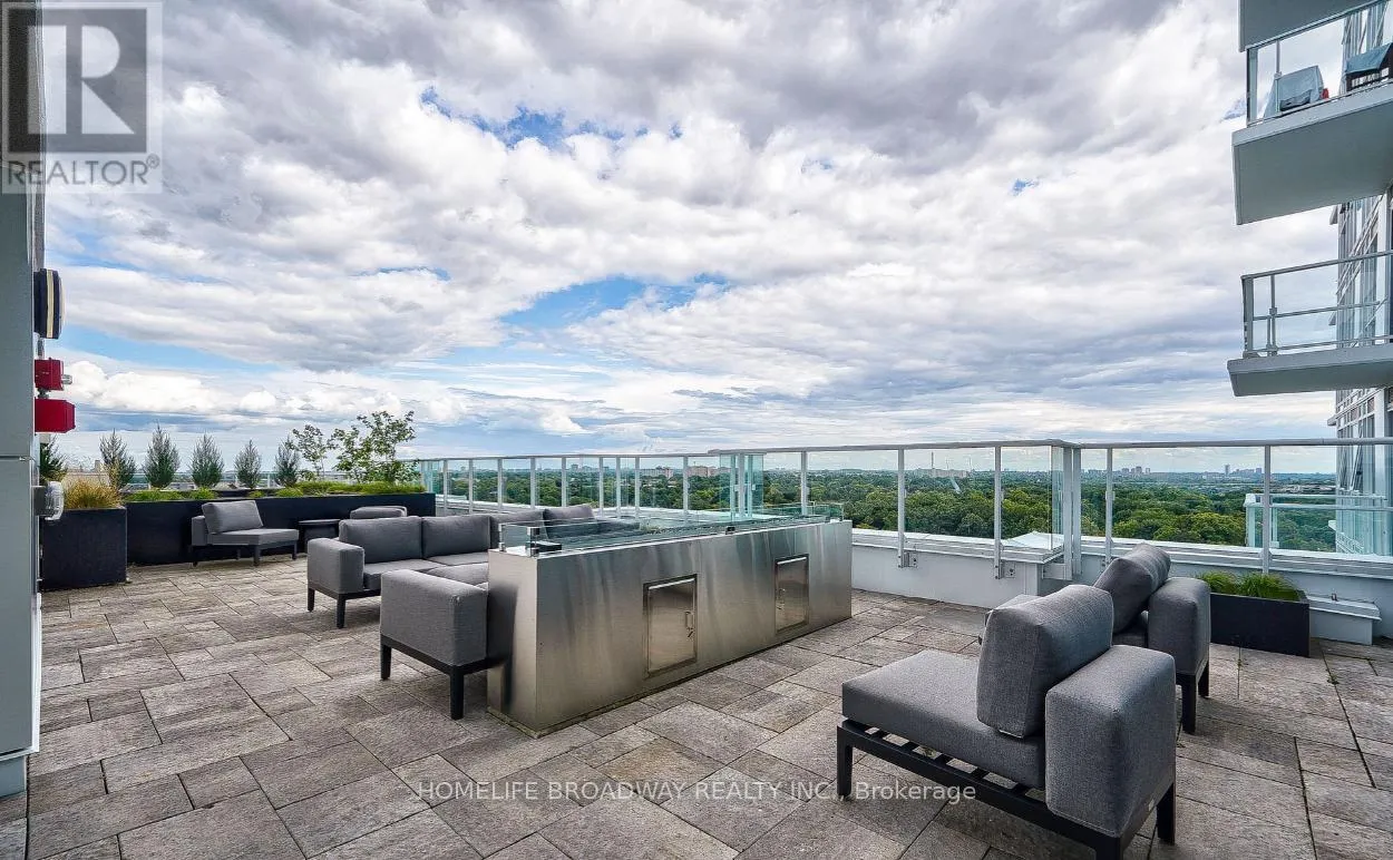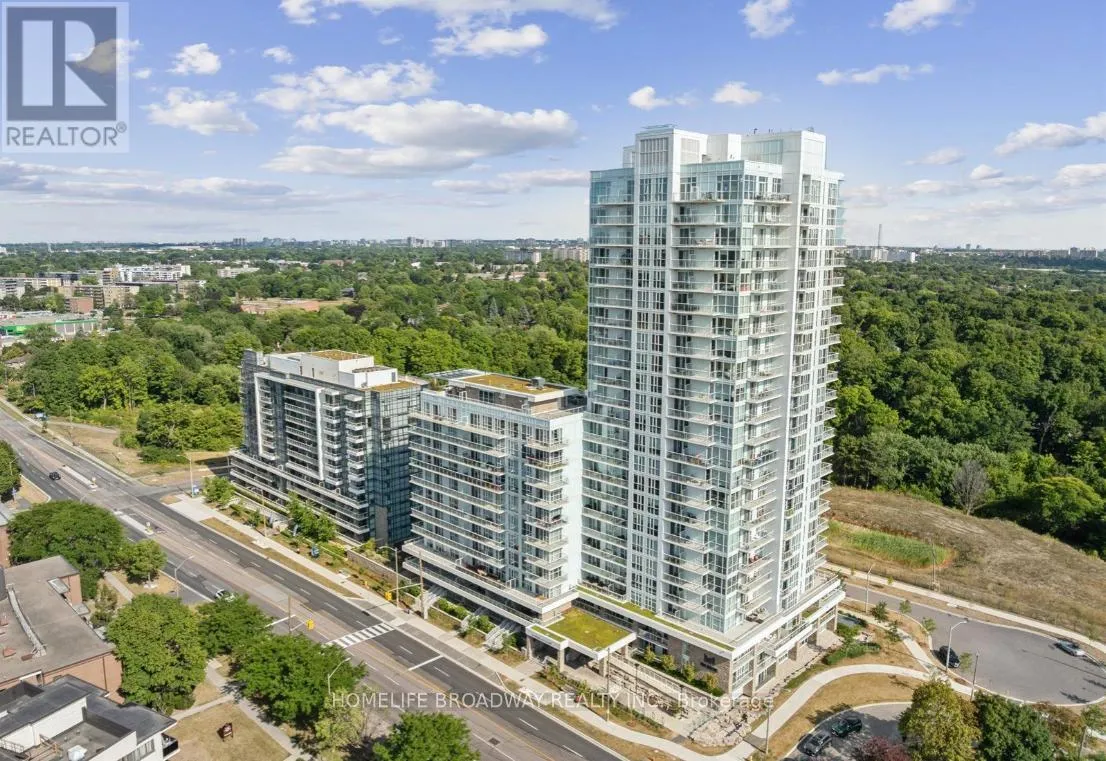 Great to use for a Guest Bedroom or A Private Office Space! Nature Blends Peacefully With The City, High Up Above On The 18th Floor; with Panoramic Views Of the CN Tower/Toronto Skyline. Step outside onto the 94 sqft balcony with your morning coffee to catch a glimpse of the sunrise's brightness to your left. Have a relaxing dinner on the balcony in the evening, with the sunset's colours flowing from your right. The Spacious Bedroom Can Easily Fit A Large Bed; and also has it's own Full Ensuite Bathroom! The Second Bathroom Has a Glass Shower Stall! The Living Room can Accommodate An L shaped couch, since the balcony door is thoughtfully placed! The Kitchen Appliances are Stainless Steel and Standard Sized! The Countertops are a Beautiful Granite that blends well with the Tiled Backsplash! Excellent Colours Selected for the Spacious Cabinetry and Smooth Flooring Throughout! 9 Feet Ceiling Height Throughout As Well! This Unit Location is right beside the fire escape, so you have More Hallway Privacy; as well is Good for Safety. Building Amenities Include: 24/7 Concierge, Outdoor BBQ Terrace, Party Room, Fitness facility (gym), Children's Playroom and even a Dog Washing Station! Excellent Location Just Minutes away from Ravines, Parks, Shopping, Restaurants, Cafes, Shops At Don Mills and Easily access the Don Valley Parkway & Highway 401. There is even a TTC Bus Stop In Front of the Building! This Is Definitely Worth It To Take A Look! (id:27476)