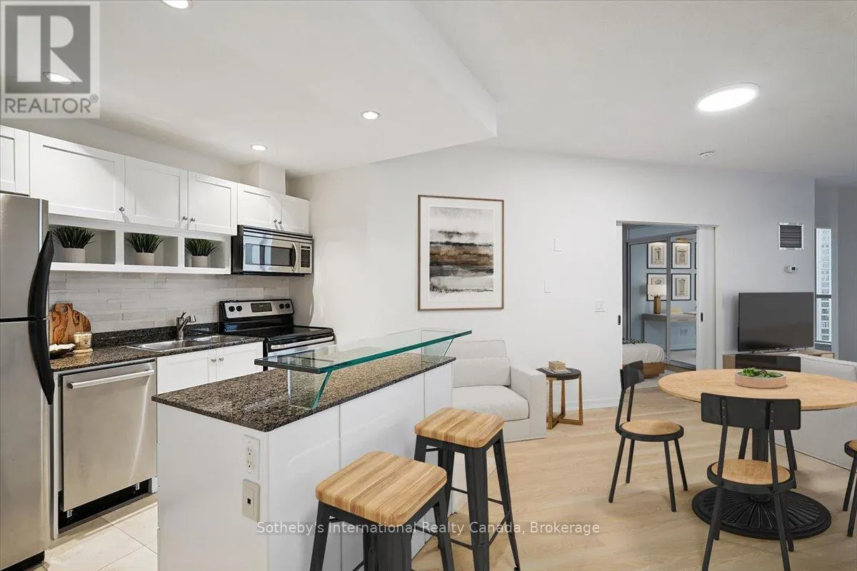 Bathed in natural light, this beautifully appointed suite features a highly desirable and hard-to-find parking space, along with a versatile solarium ideal for a sophisticated home office or inspiring creative retreat. The modern kitchen features professionally refinished cabinets-a NEW, stylish update to elevate the space - along with granite countertops, a stone backsplash, and a stylish breakfast island, seamlessly flowing into an open-concept living area. Thoughtfully styled and NEW professionally painted in designer colours using premium Benjamin Moore paint, the space feels bright, welcoming, and effortlessly refined for everyday living. NEW professionally laid modern flooring extends throughout all main areas, creating a seamless and elevated aesthetic. The private primary bedroom serves as a tranquil retreat, complete with a well-appointed ensuite featuring a floating vanity, under-mount lighting, and built-in storage. A chic powder room offers added convenience for guests. Additional highlights include in-suite laundry discreetly tucked away, NEW tasteful light fixtures, and a functional, move-in-ready layout. Situated in a prestigious Waterclub residence in the heart of this world-class city, residents enjoy 24-hour concierge service and secure fob-controlled elevator access. This exceptional condo effortlessly blends luxury, comfort, and an unbeatable location-just steps to the TTC, scenic waterfront trails, premier dining, shopping, and the Financial District -all at a remarkable value, making this a smart opportunity for a savvy buyer to secure a prime property before the market shifts (id:27476)