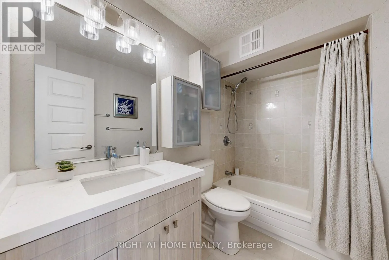This hidden gem in Toronto sits on 14 Acres of private grounds loaded with indoor & outdoor amenities with a gated entry. This very spacious suite (945 sq.ft plus balcony) is in an excellent, move-in condition and is freshly painted throughout (2026). It boasts 2 good size bedrooms, renovated (2026) modern kitchen with granite counters, brand new ceramic backsplash tiles and kitchen cabinet doors, full size appliances (dishwasher 2024, microwave 2024), undercabinet lighting. Open concept living/dining area, crown moulding, New modern laminate flooring throughout. Ensuite Laundry room with storage. Renovated 4 Pc Bath (2026 vanity, floor tiles toilet), South facing balcony with city views. Includes 1 underground parking. Custom curtains and closet organizers. Enjoy resort-style living in a secure gated community with top-tier amenities: indoor pool, gym, sauna, tennis, squash, basketball courts, party rooms, BBQ area, and more. Very well managed condo, brand new windows 2026, maintenance fees cover all utilities, cable, and Bell high-speed internet. A move-in ready suite with incredible value and location. View Virtual Tour/ 3D Matterport walkthrough. (id:27476)