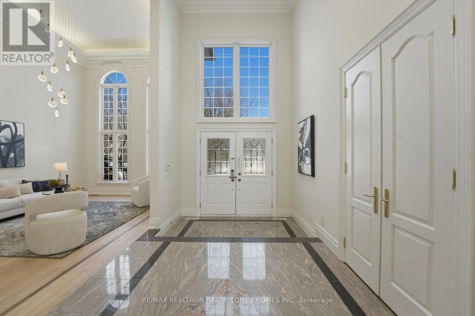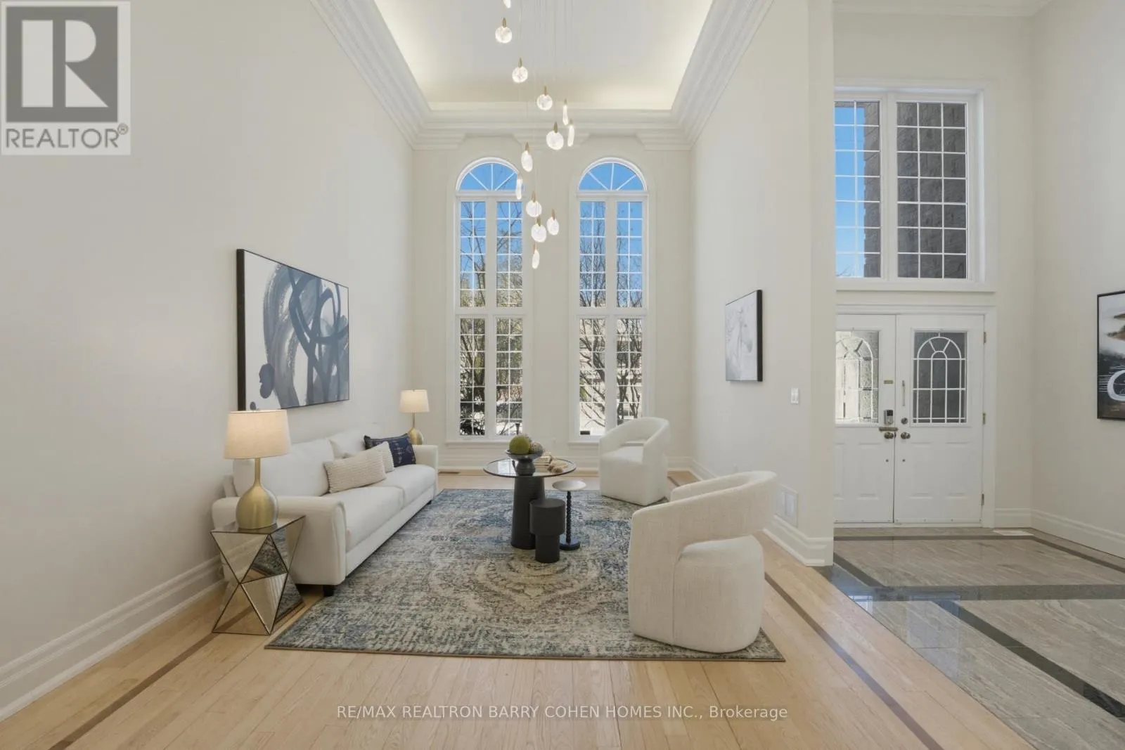 Bayview Ave / Risebrough Ave A statement of luxury and grand scale, this newly renovated custom-built residence in prestigious Willowdale East offers expansive living spaces, refined finishes, and an exceptional layout designed for both elegant entertaining and elevated family life. A dramatic cathedral-ceiling foyer sets the tone, while oversized windows and two skylights flood the home with natural light, enhancing its airy sophistication.