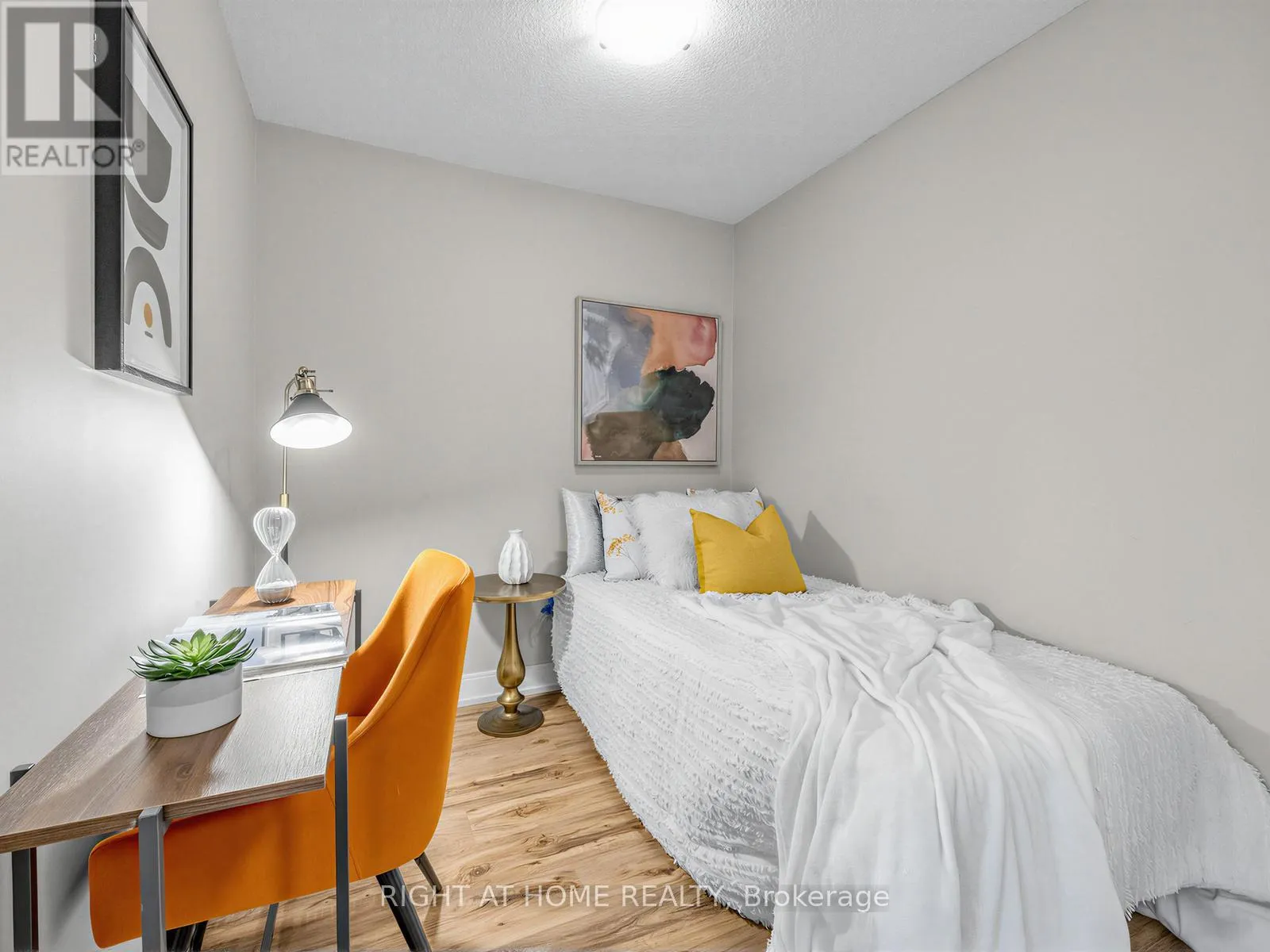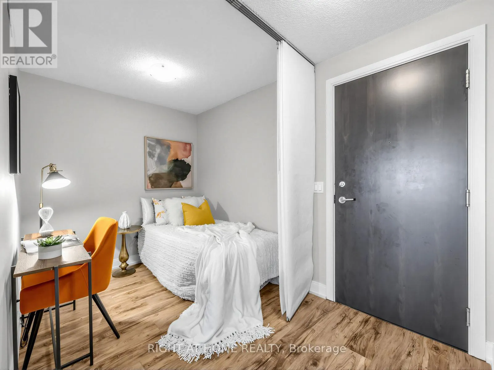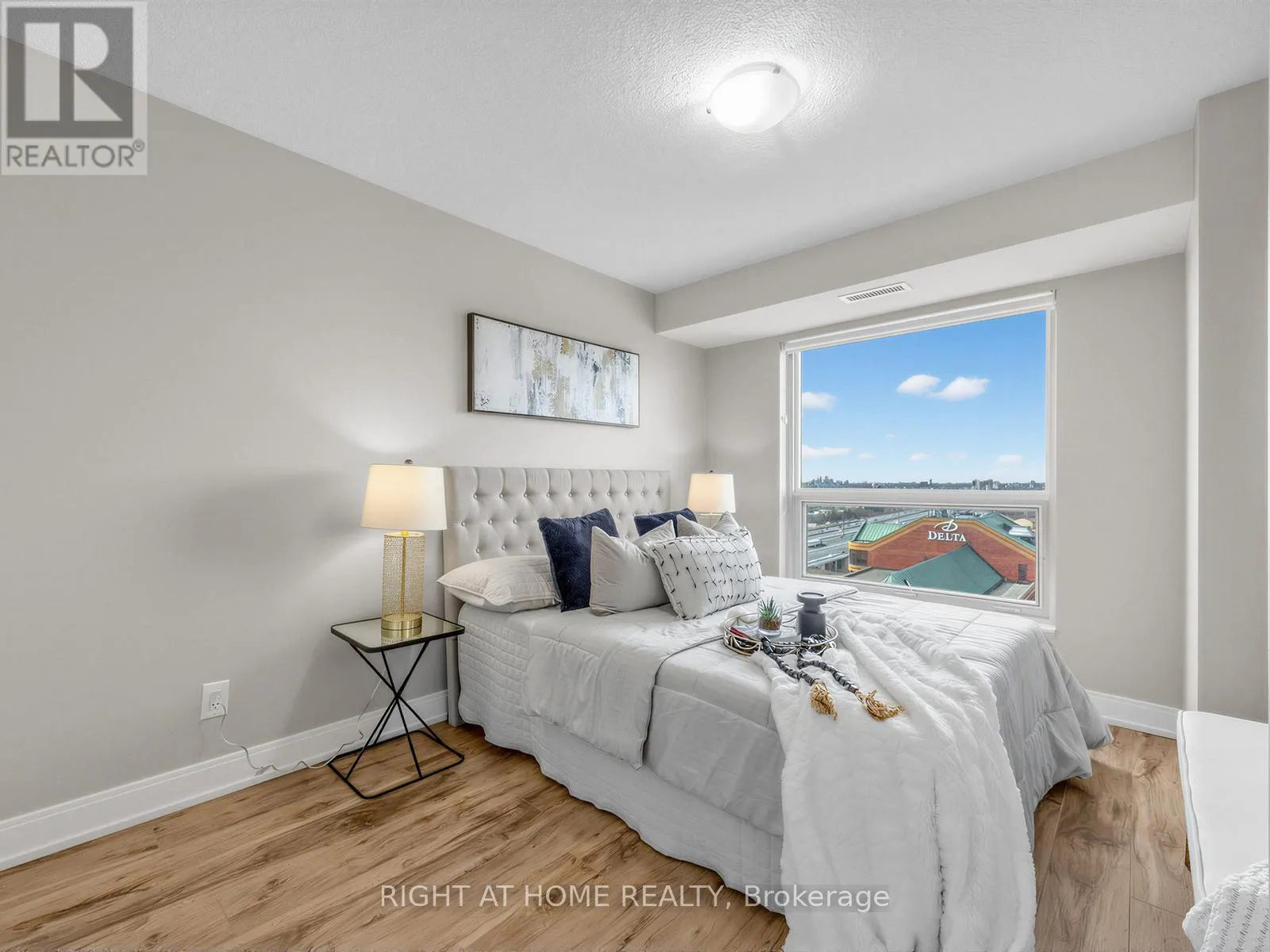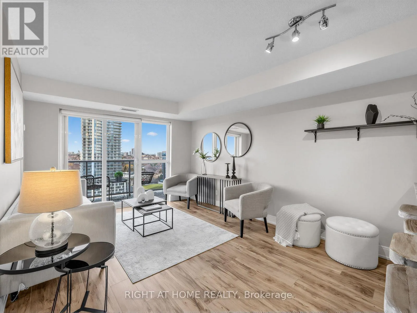 Luxury vinyl flooring extends throughout the suite.The primary bedroom features a walk-in closet and large window, while the spacious den with sliding panel blinds can easily function as a second bedroom or home office. The living area opens to a private balcony, perfect for enjoying beautiful sunset views.Residents enjoy resort-style amenities, including an indoor pool, fitness centre, party room, theatre room, and ample visitor parking. Conveniently located near Hwy 401, Kennedy Road, GO Transit, shopping, groceries, and entertainment. (id:27476)