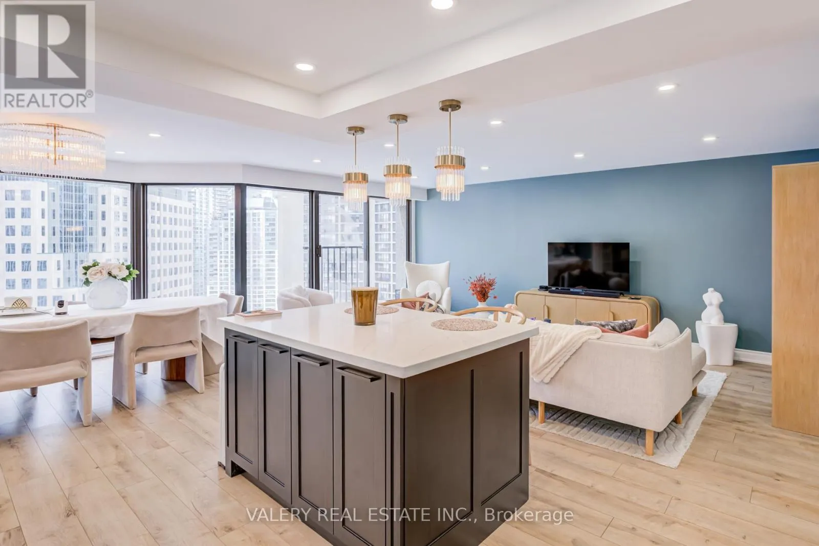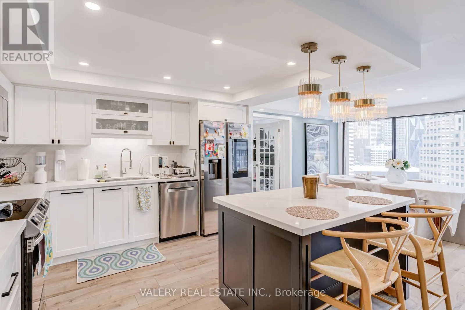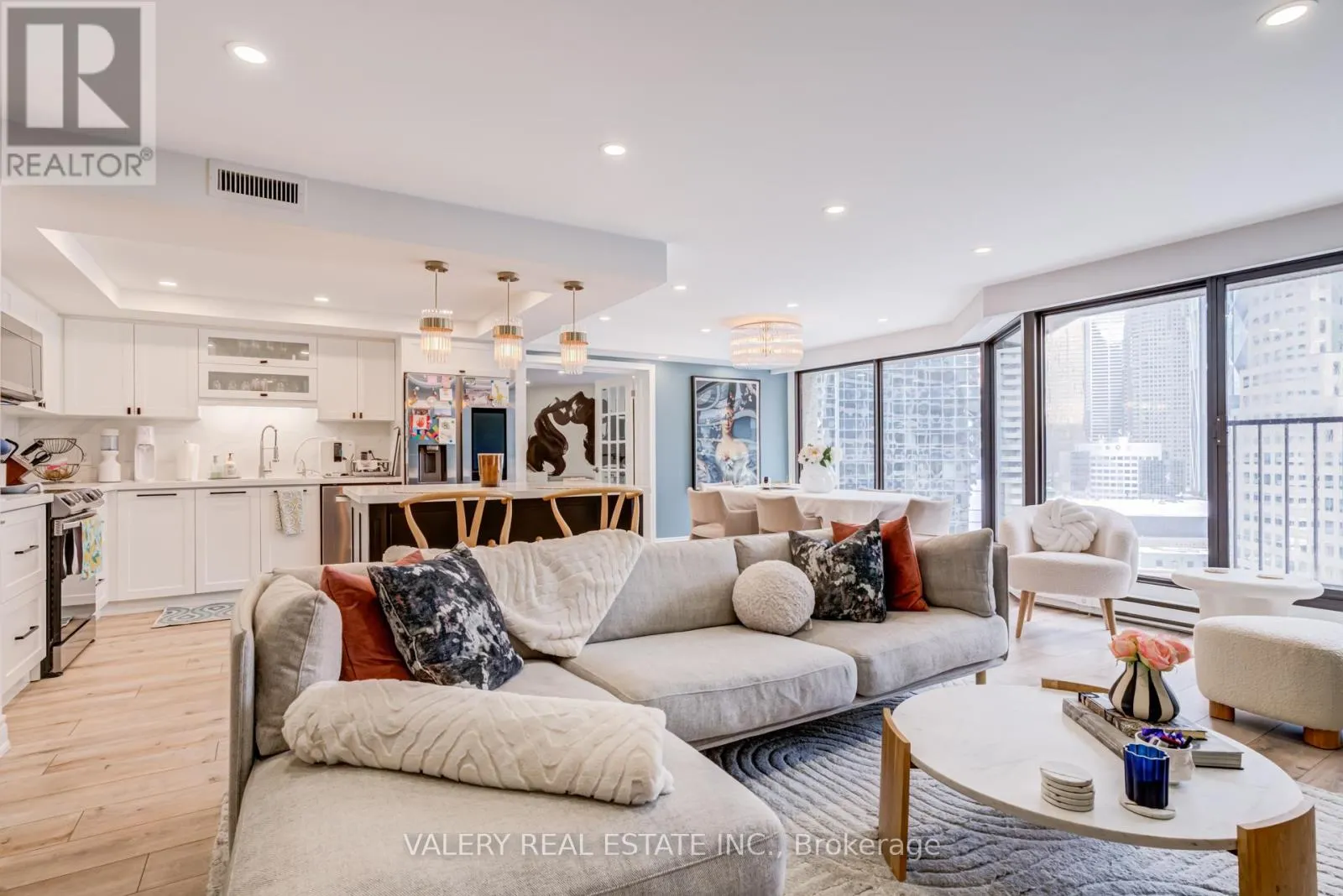 Cross Streets: Bay & Queens Quay. ** Directions: use google maps. Live on the water! Walk to work! Entertain in style! Welcome to 55 Harbour Square - one of Toronto's premier waterfront residences.This open-concept suite features floor-to-ceiling windows, smooth ceilings, pot lights, and modern laminate flooring throughout. The contemporary kitchen is finished with stainless steel appliances and quartz countertops, Kitchen Island and backsplash, creating a clean, elevated aesthetic.