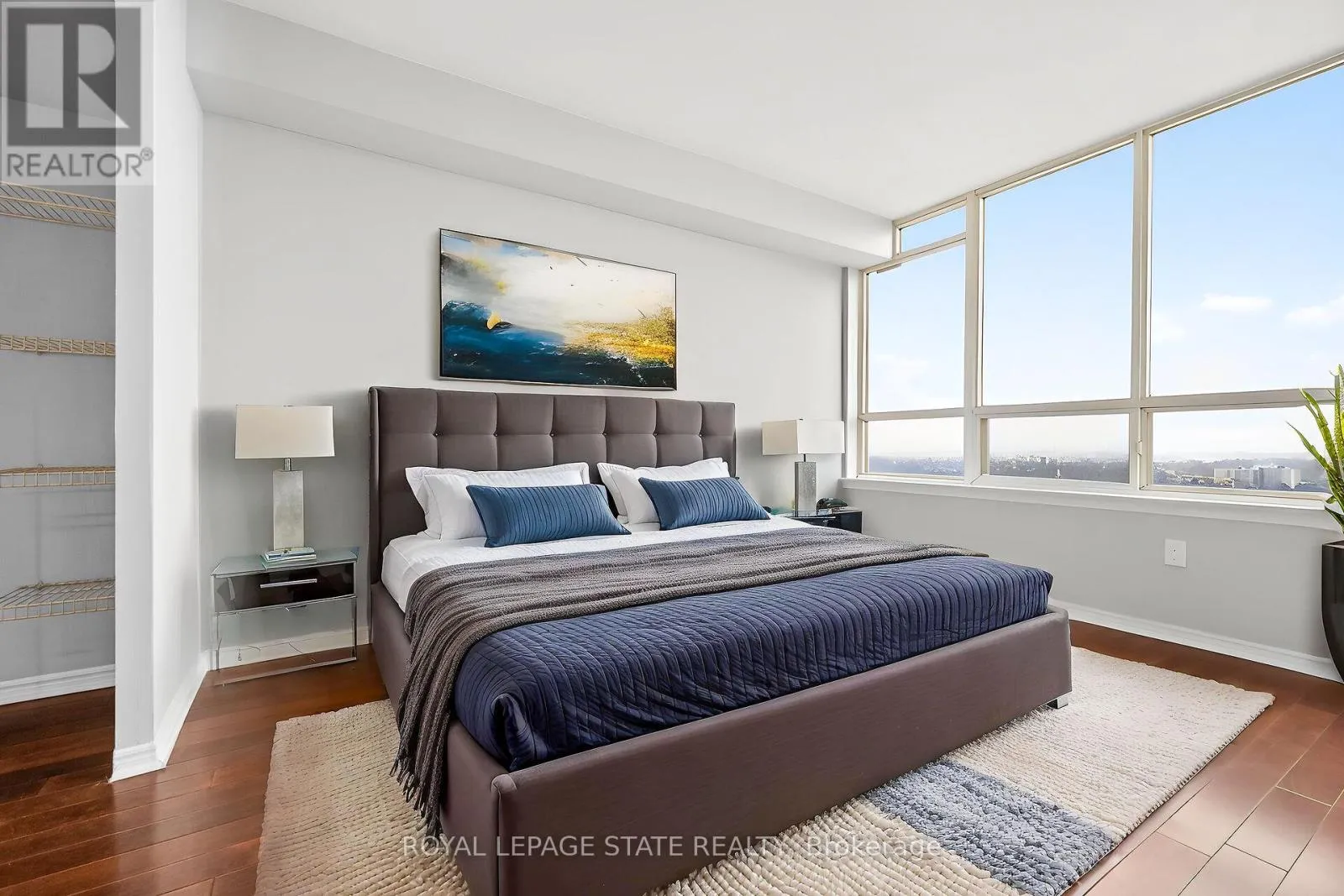 Midland/Danforth Gorgeous, bright and sun-filled unit with breathtaking views for miles! This spacious 2-bedroom, 1-bath suite features a functional split-bedroom layout and large windows that flood the space with natural light. Hardwood floors throughout enhance the warm and inviting atmosphere.Freshly painted with updated fixtures, this well-maintained unit is move-in ready. The standout feature is the exceptionally large private balcony-one of the best in the building-offering stunning city views and the perfect space to relax, unwind, or entertain while enjoying the sunshine.
