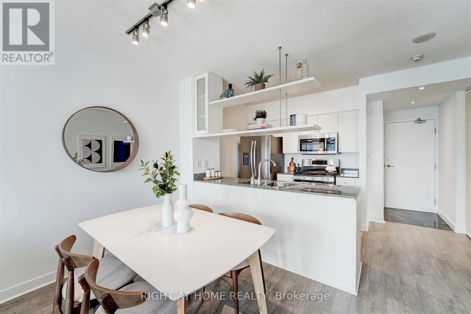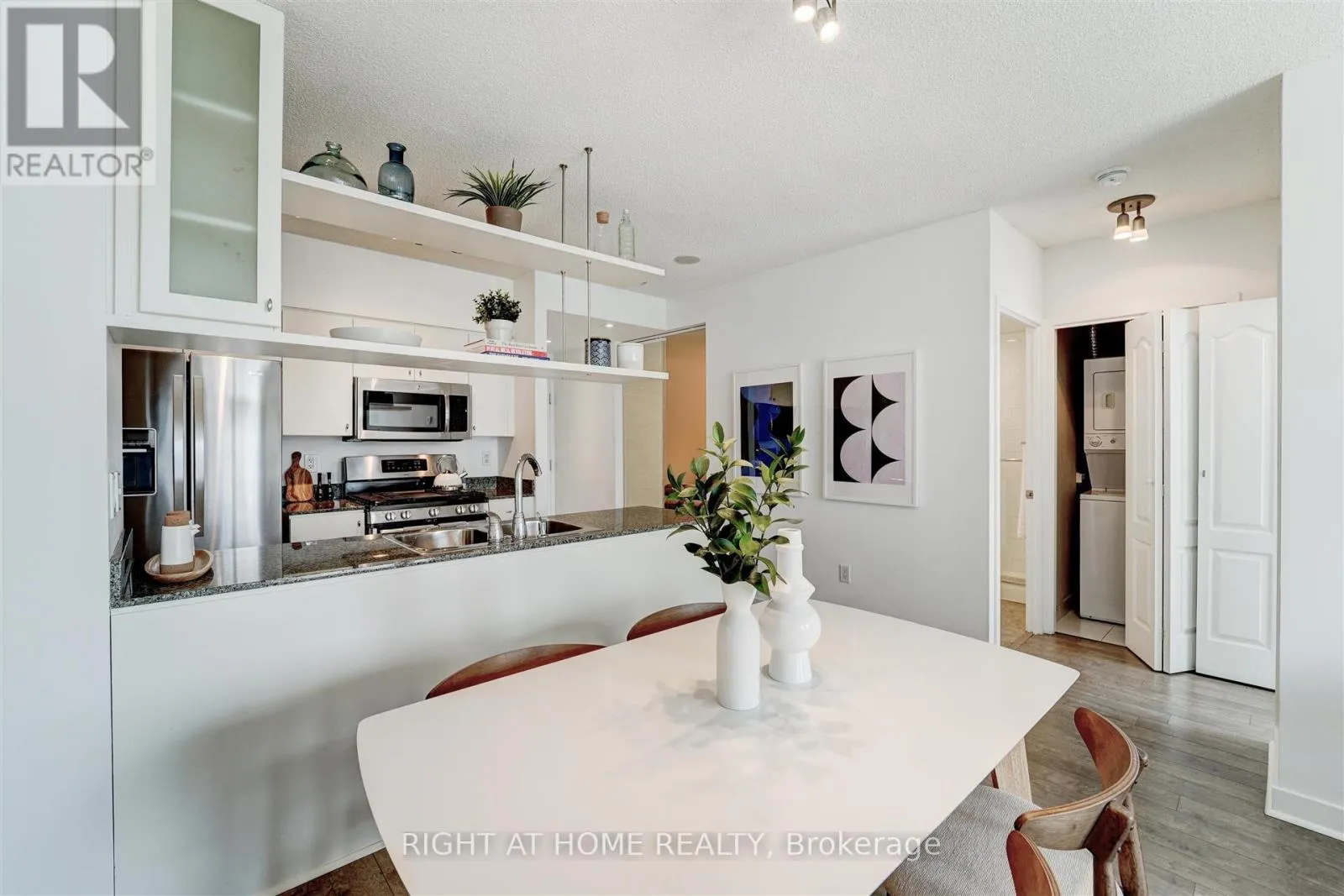 Spadina & Bremner Welcome to Harbour View Estates. This bright and modern 1+Den suite offers a smart, functional layout in one of Toronto's most vibrant waterfront communities. Steps to the Harbourfront, Gardiner Expressway, CN Tower, Scotiabank Arena, Rogers Centre, transit, dining, and shopping. The open-concept living space features floor-to-ceiling windows, filling the unit with natural light. The kitchen is equipped with stainless steel appliances, granite countertops, and a gas stove.