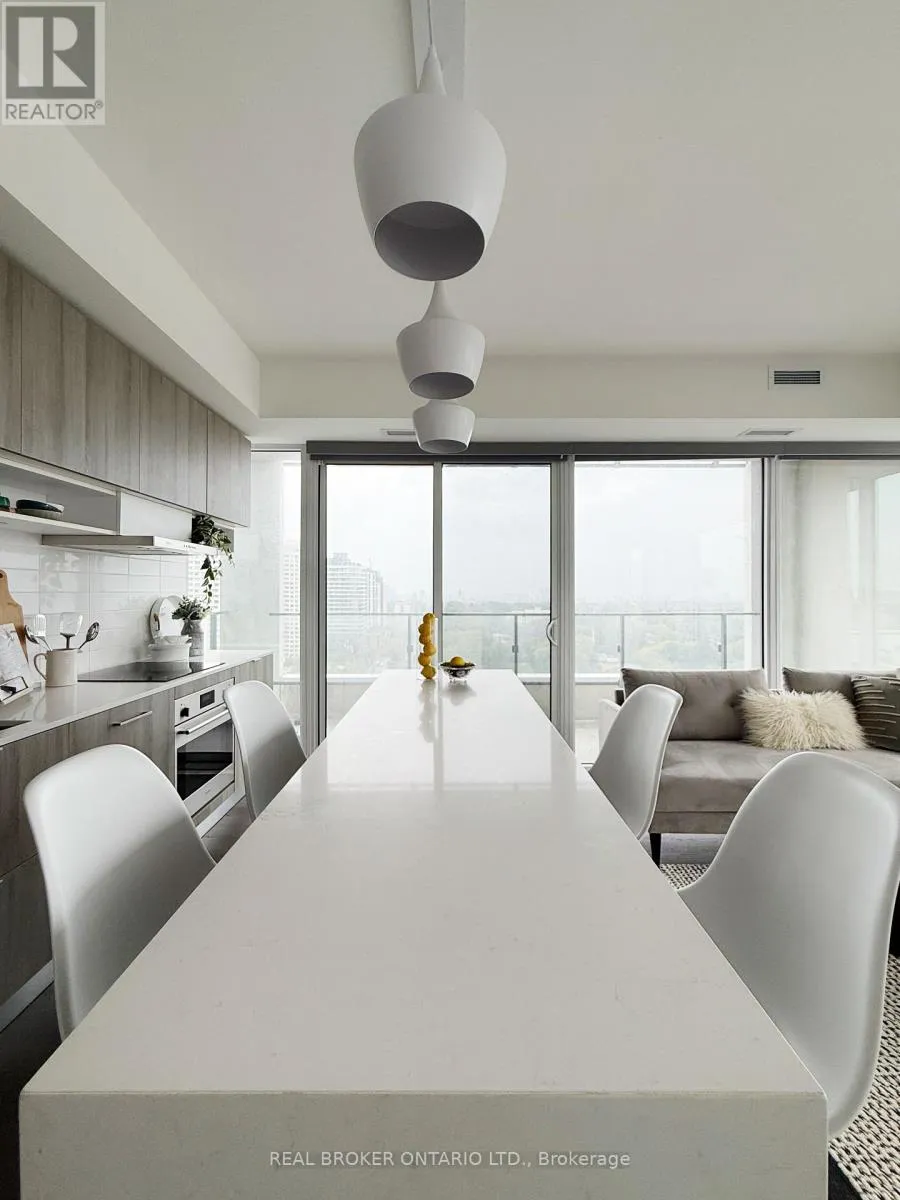 The two spacious bedrooms each have exterior windows and direct access to an ensuite, providing ultimate privacy and comfort for those who call it home. It's truly one of the best layouts in the building, with a thoughtful design that allows for easy furniture placement in the living room and no wasted space in the kitchen or bedrooms. The beautifully upgraded kitchen boasts high-end appliances, sleek countertops, and an oversized island with seating for four - perfect for entertaining! And the location? Unbeatable! With the subway right across the street, you can be on your way to anywhere in the city in just minutes. Plus, you're just steps from some of the neighbourhoods best spots. Grab a latte at Hale Coffee, indulge at Oretta, or browse stylish home finds at West Elm. Residents enjoy premium amenities, including a gym, 24-hour concierge, an outdoor pool, a rooftop terrace, guest suites, and paid visitor parking ensuring a lifestyle of comfort and convenience. (id:27476)