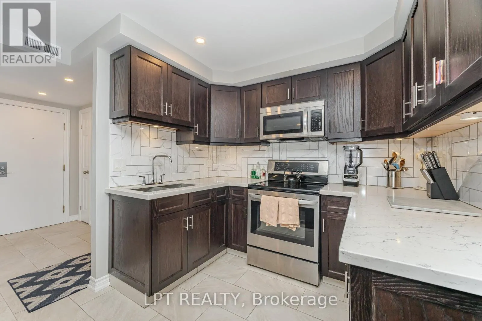 The custom-designed modern kitchen impresses with quartz countertops, full-size stainless steel appliances, a built-in microwave, and abundant cabinetry and workspace. The spacious primary bedroom includes a walk-in closet with custom organizers and a striking bay window framed by floor-to-ceiling glass and hardwood flooring. The sleek, updated bathroom features a walk-in tiled shower with a built-in bench and a custom mirrored vanity. With all-inclusive maintenance fees (excluding hydro), this suite is the perfect blend of comfort and convenience. Ideally situated at University and Dundas, you're steps to Public Transportation, the Eaton Centre, Hospital Row, U of T, Toronto Metropolitan University, and an array of shops, cafes, and restaurants-everything downtown living has to offer. (id:27476)