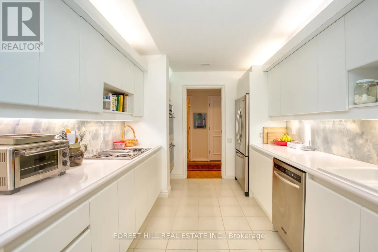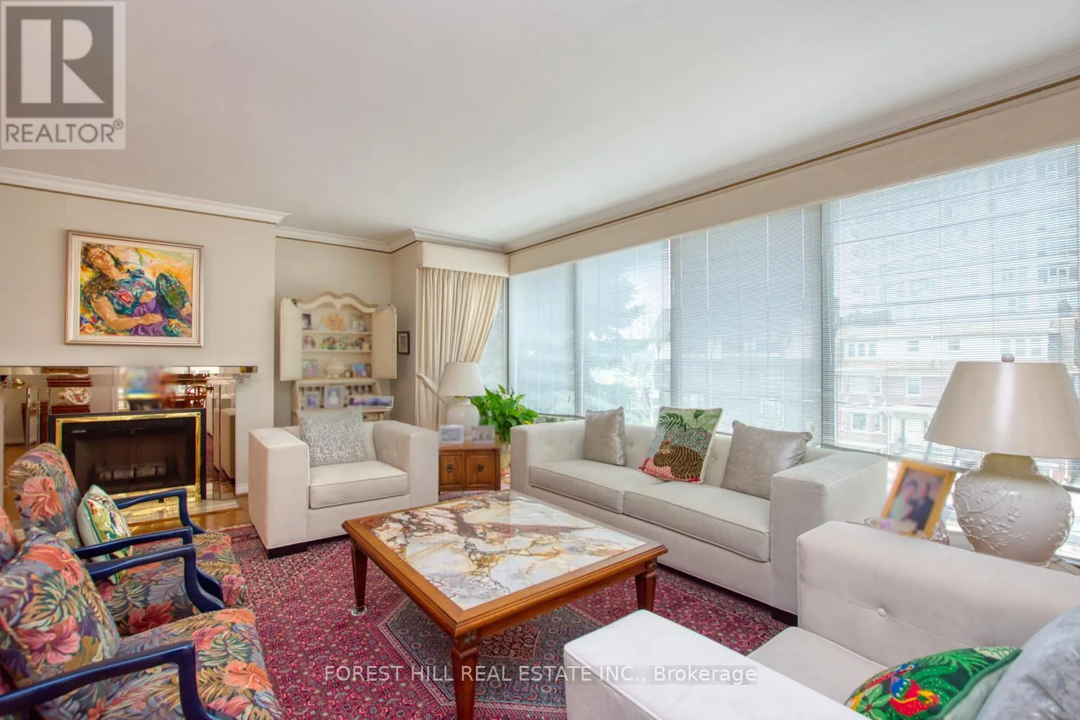 Cross Streets: St Clair Ave West. ** Directions: GPS. Well known luxury condo in Lower Forest Hill Village! 2369 square feet (including solarium). Large 1 bedroom suite (was a 2 bedroom 2nd was converted to large family room/den) with formal living and dining rooms. Large eat in kitchen, enclosed balcony is now part of the large family room/den! Large Primary suite. Lots of storage space with 2 parking spots and locker.