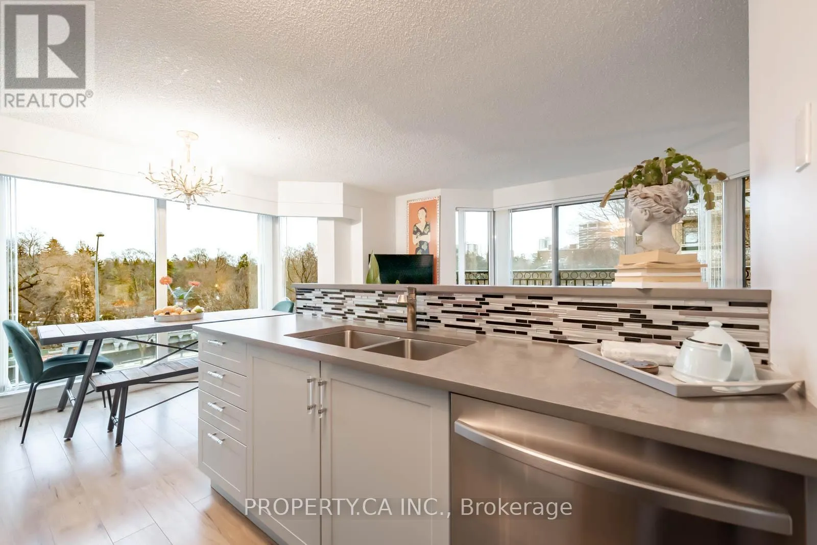 Yonge / St Clair A true Midtown Gem. Generously laid-out corner suite with $$$ spent on renovations, featuring a designer kitchen, new washer/dryer and refined finishes throughout. Highly desirable South-East exposure with unobstructed forever views over the treetops of Mount Pleasant Cemetery and Park, ensuring long-term light and privacy in the living and dining areas. Walk-in-closet and Ensuite in Primary Bedroom with South-West exposure provide excellent natural light all day.