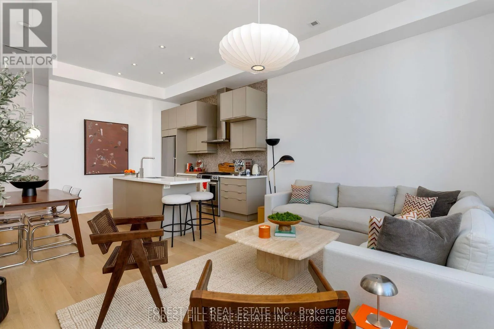 Bathurst/Dupont Welcome to unit 204 at the Annex Loft Houses. This well appointed 3-storey condo totaling approximately 1,548 square feet of interior and exterior space offers spacious, thoughtfully designed living space with quality upgrades throughout, including wide-plank white oak hardwood floors and upgraded light fixtures. 11 foot floor-to-ceiling windows fill the main floor with natural light, complementing the modern kitchen.