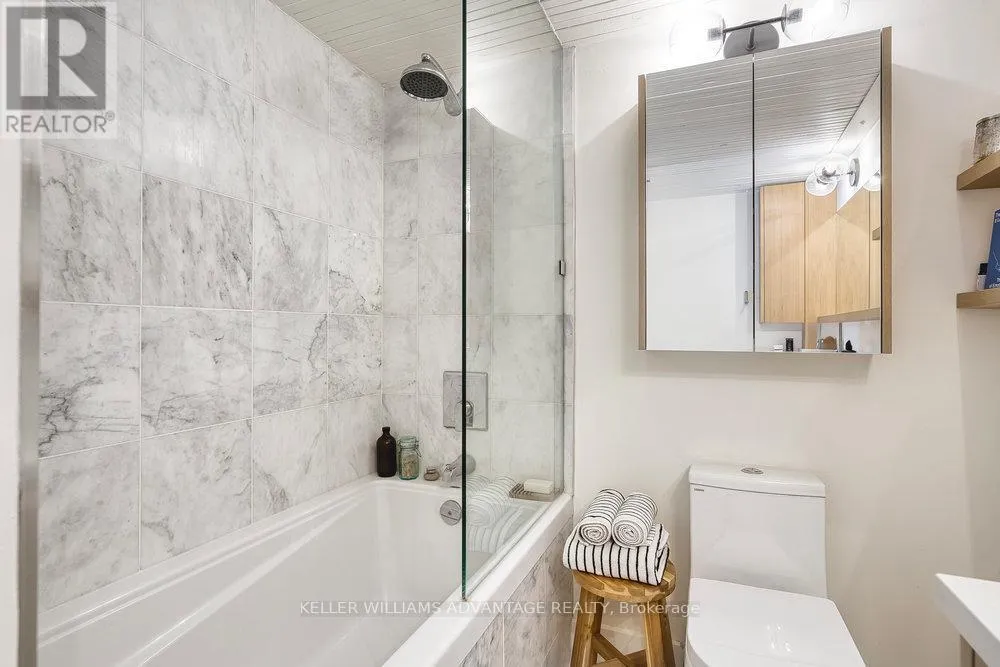 Spacious kitchen with stainless steel appliances, top of the line WOLF gas stove, abundant counter space, and centre island. Bedroom with hardwood flooring on second floor overlooks the gorgeous main-floor living space. Freshly renovated custom four-piece bathroom. Relaxation awaits on your totally private roof-top terrace. This wonderfully-kept building - formerly the Toronto EveningTelegram - has been converted into just 10 striking residential lofts in this pedestrian-friendly downtown-east community. Loft is zoned as work/live. Mere steps from multiple transit routes, and an easy stroll to the parks, shops and services of Parliament Street. The best of the city awaits! (id:27476)