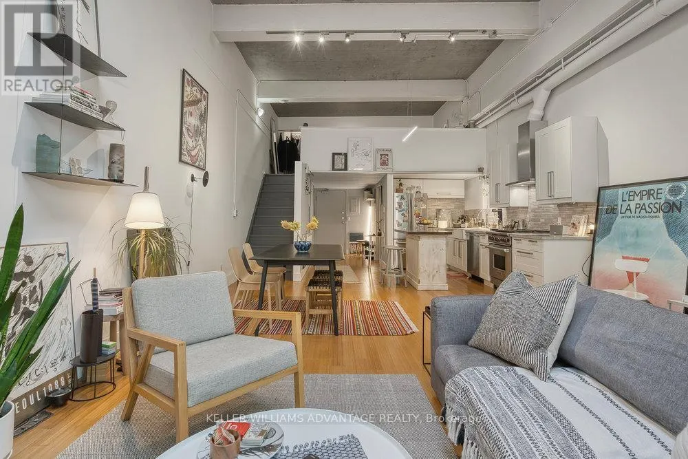 Spacious kitchen with stainless steel appliances, top of the line WOLF gas stove, abundant counter space, and centre island. Bedroom with hardwood flooring on second floor overlooks the gorgeous main-floor living space. Freshly renovated custom four-piece bathroom. Relaxation awaits on your totally private roof-top terrace. This wonderfully-kept building - formerly the Toronto EveningTelegram - has been converted into just 10 striking residential lofts in this pedestrian-friendly downtown-east community. Loft is zoned as work/live. Mere steps from multiple transit routes, and an easy stroll to the parks, shops and services of Parliament Street. The best of the city awaits! Brand new on-demand boiler installed in 2026. Parking spot available at $100/month. (id:27476)