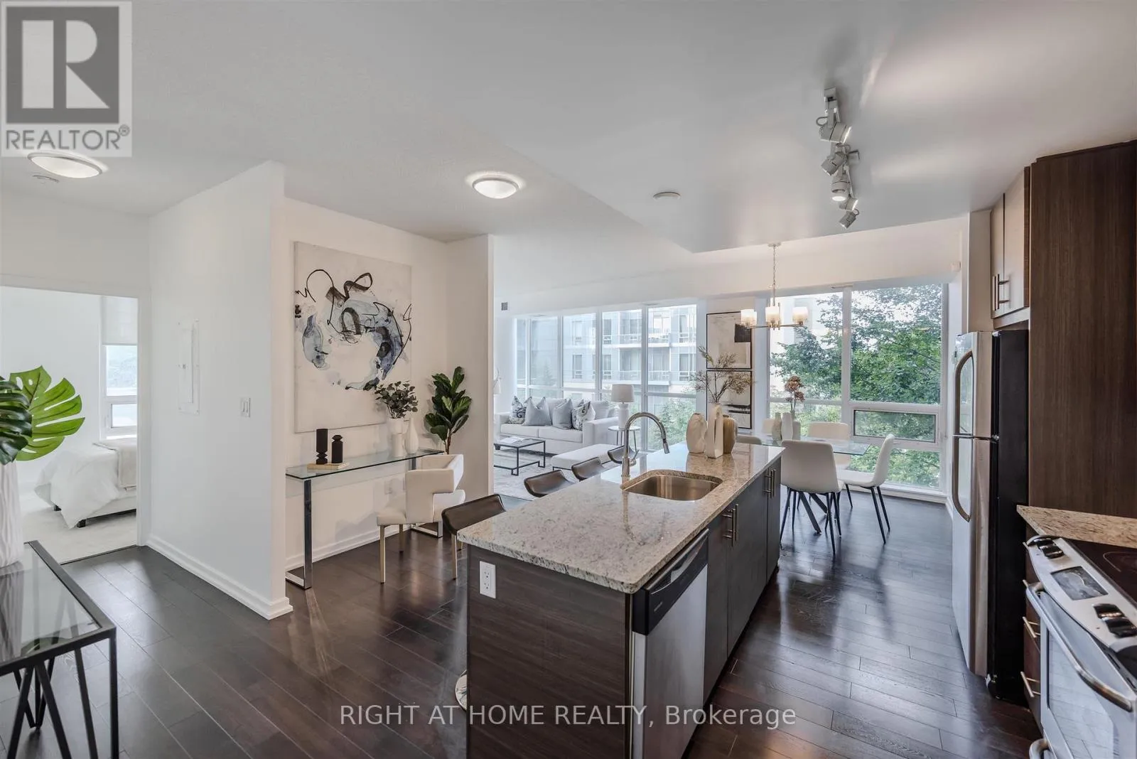 The chef-inspired kitchen is equipped with premium stainless steel appliances, granite countertops, a custom backsplash, generous cabinetry, and a convenient centre island. The expansive primary bedroom offers a walk in closet and a four piece ensuite. Enjoy a spacious 177 square foot balcony overlooking the serene courtyard and plush greenery, plus the convenience of one parking space and one locker. At Emerald City, residents benefit from an array of upscale amenities including a cutting-edge fitness center, swimming pool, hot tub, party room, games room, and 24-hour concierge service. Move right in and start enjoying the lifestyle you deserve! The home is conveniently located next to shops, dining, great schools, highways 401 and 404/DVP, and public transportation including Don Mills Subway Station at your doorstep, providing the ultimate in urban living. (id:27476)