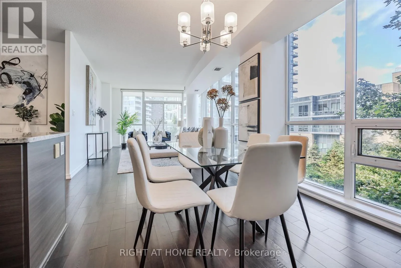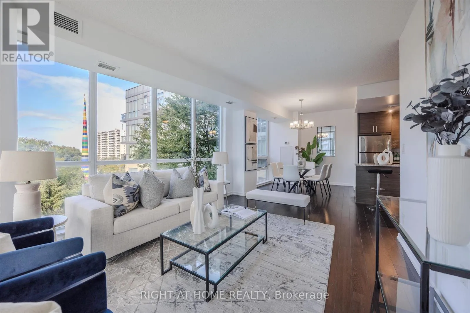Cross Streets: Don Mills Rd & Sheppard Ave E. ** Directions: Across from Fairview Mall!. *PUBLIC TRANSIT AT YOUR DOORSTEP* Welcome to an exquisite luxury condo, nestled in the prestigious Emerald City Community. This stylish residence offers more than one thousand square feet of living space, and blends modern sophistication with timeless charm, creating a truly elevated living experience. Upon entry, you're welcomed into a freshly painted interior featuring a sun-filled open-concept living and dining area with gleaming floors, soaring 9 foot ceilings, elegant light fixtures, and floor to ceiling windows.