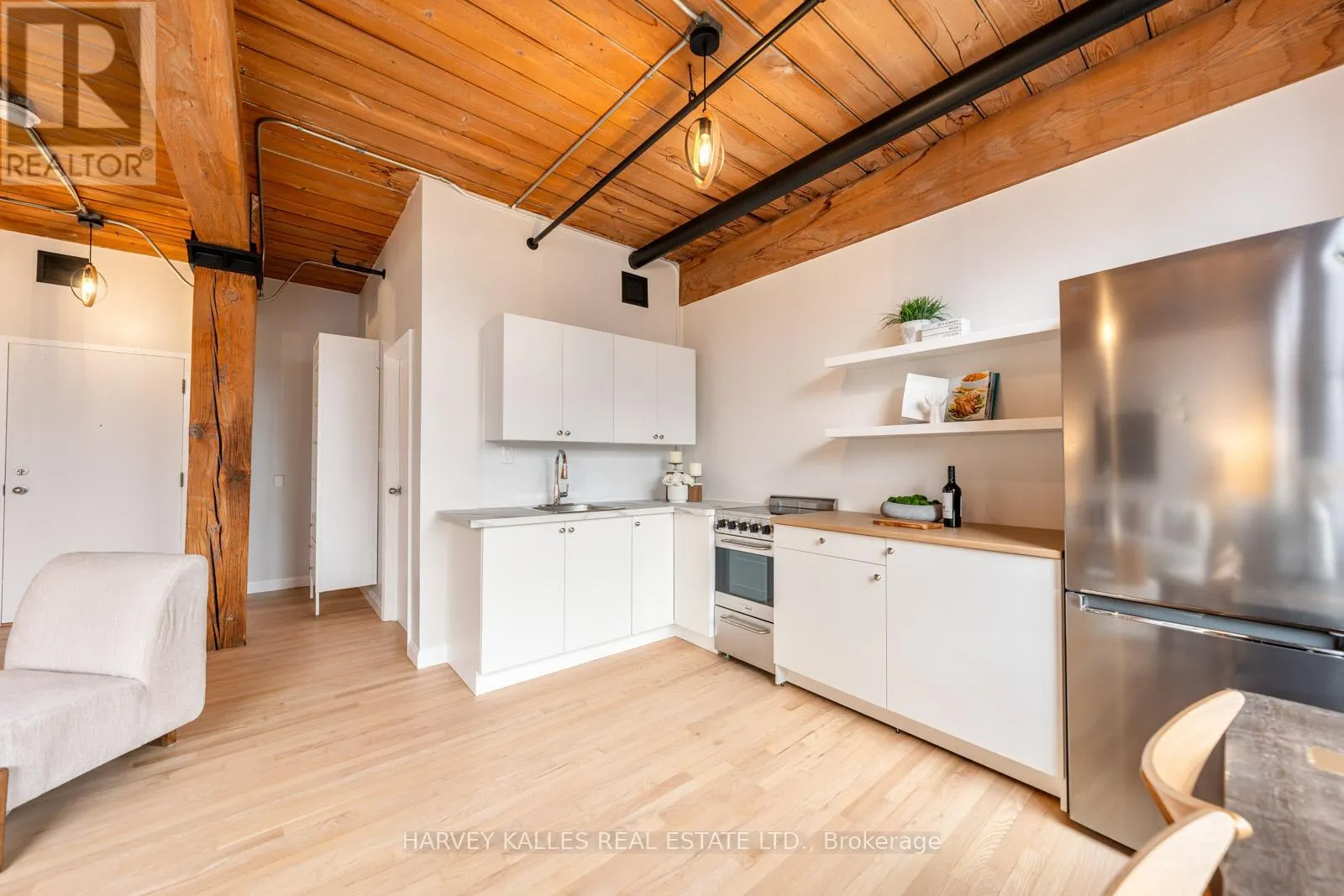 The open layout provides flexible living, dining, and sleeping arrangements, creating a seamless blend of style and functionality for modern urban living. With its refreshed interior and clean comtemporary feel, this loft is truly move-in ready. Located on a quiet residential street just steps away from Queen West's cafes, restaurants, transit, shops, and galleries, this is a rare opportunity to own in a true hard-loft conversion with low maintenance fees and unbeatable walkability. Perfect for first-time buyers, investors, or those seeking a minimalist city lifestyle in one of Toronto's most iconic buildings. (id:27476)