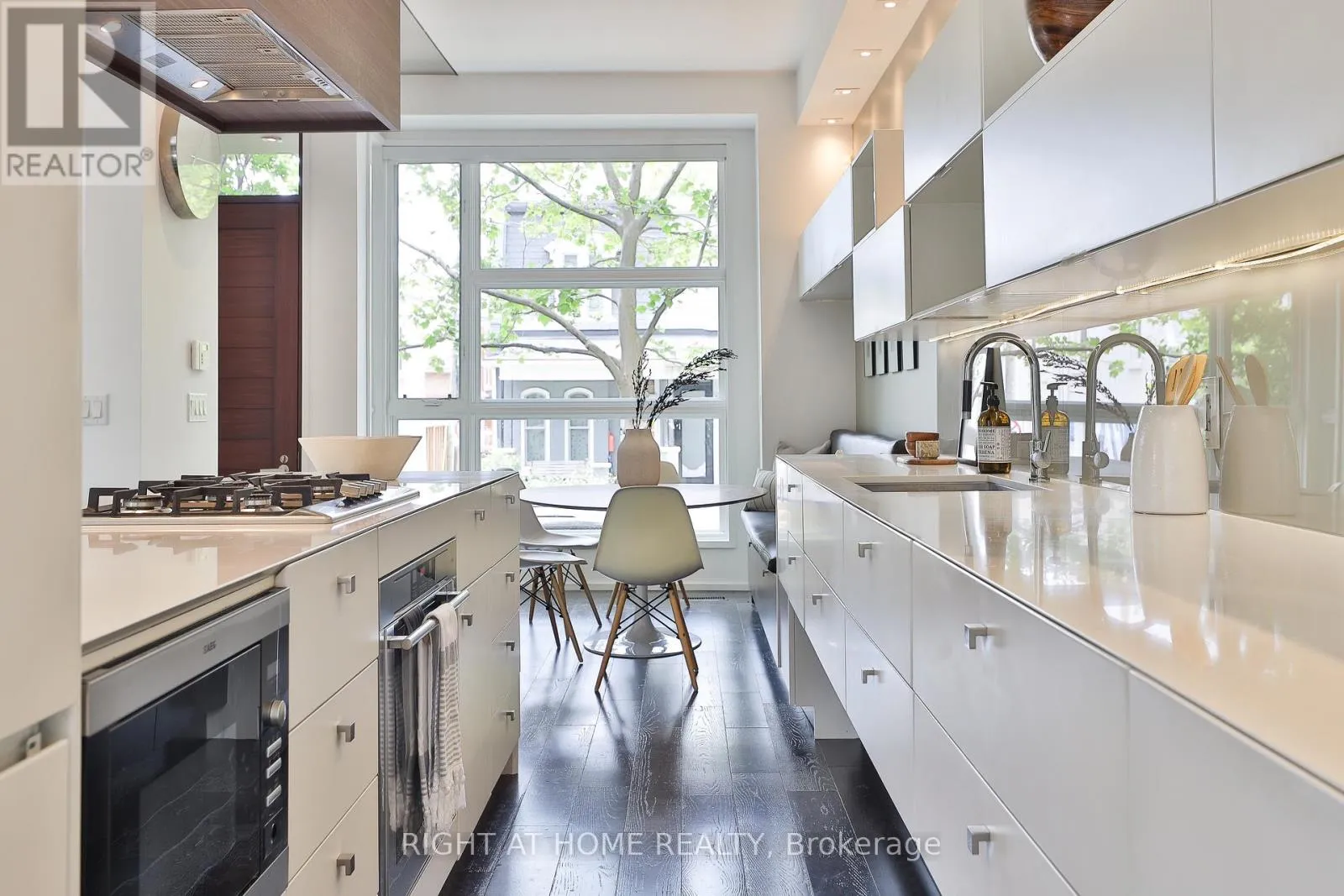 Upstairs, you'll find three bedrooms including a remarkable full-floor primary suite with walk-in closet, spa-like ensuite with soaker tub, and a private terrace with quiet views over Trinity Bellwoods. 2nd floor laundry for added convenience. The lower level offers a flexible family room / den / home office, powder room, and direct access to a secure and oversized underground garage. A rare end home in a thoughtfully designed community, just moments to College, Dundas West, Queen West and the park. (id:27476)